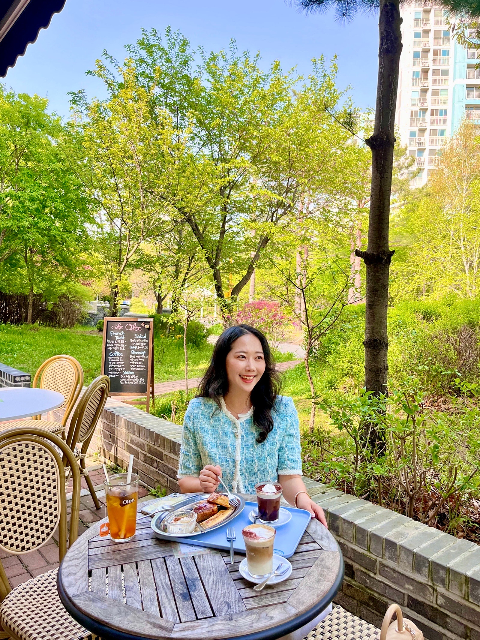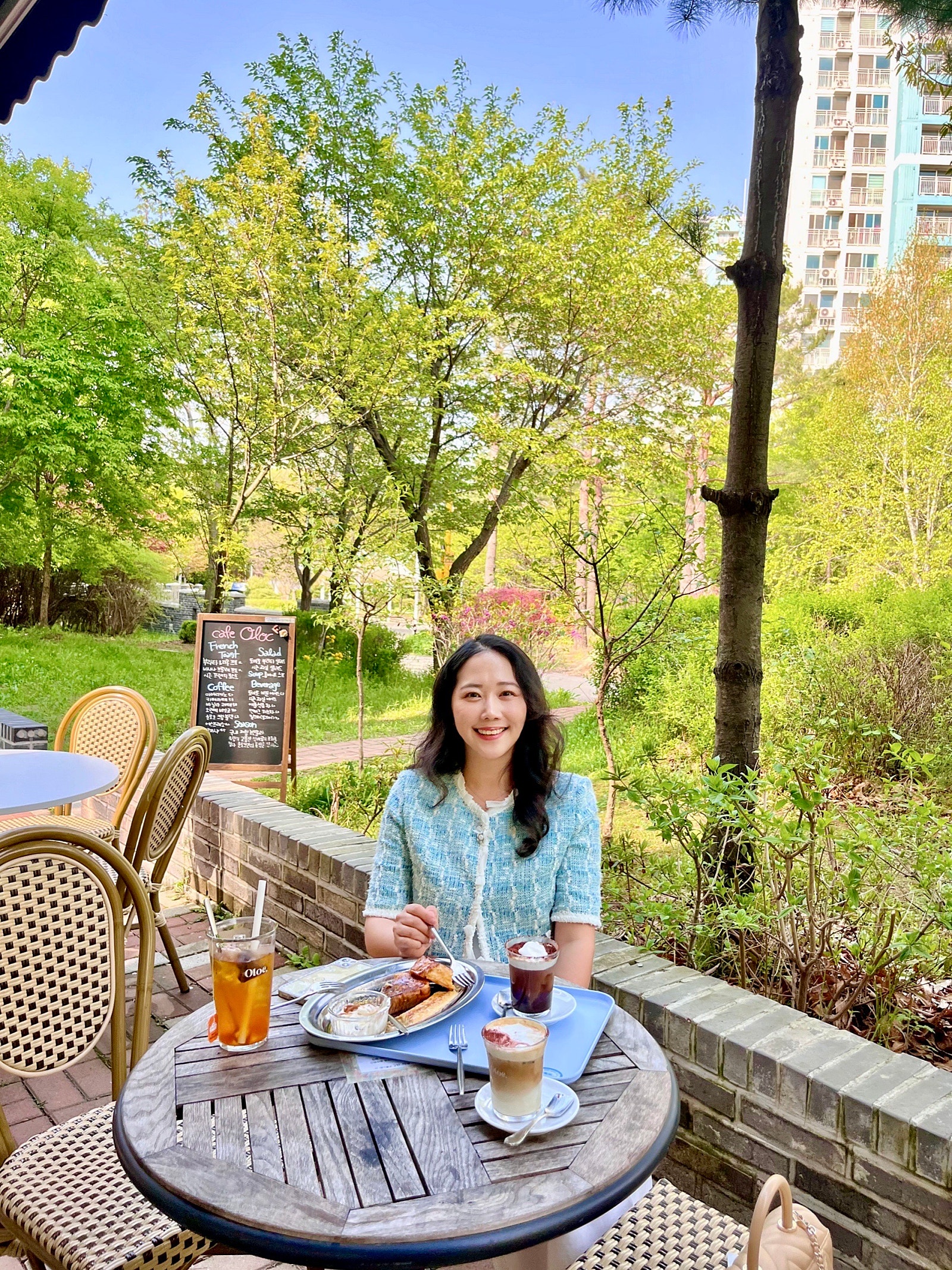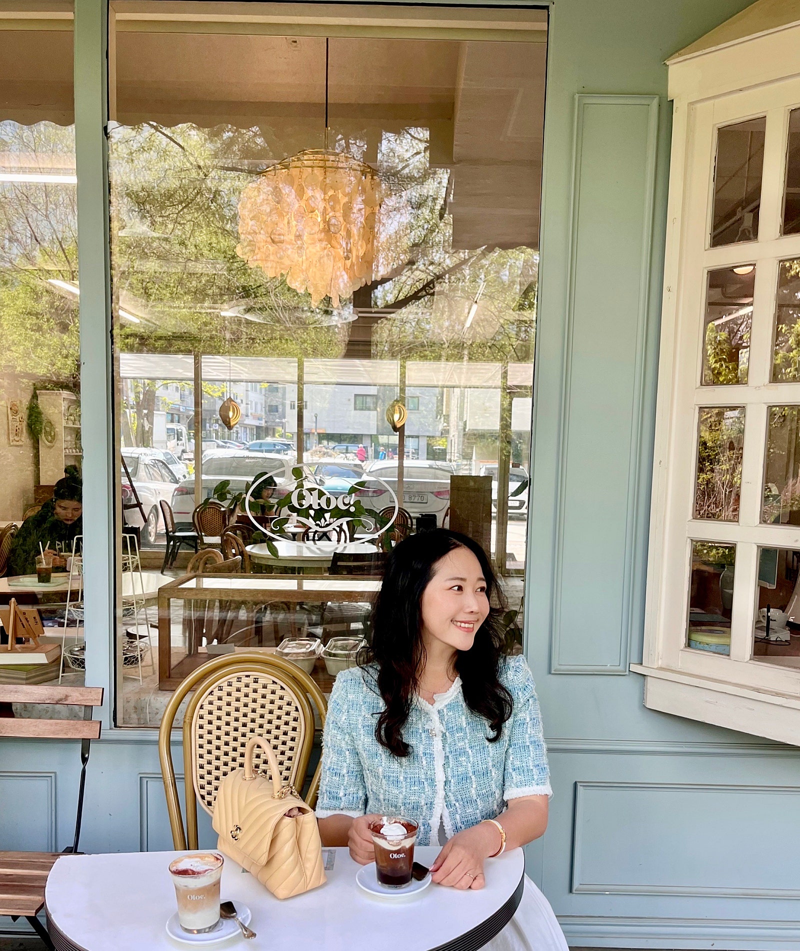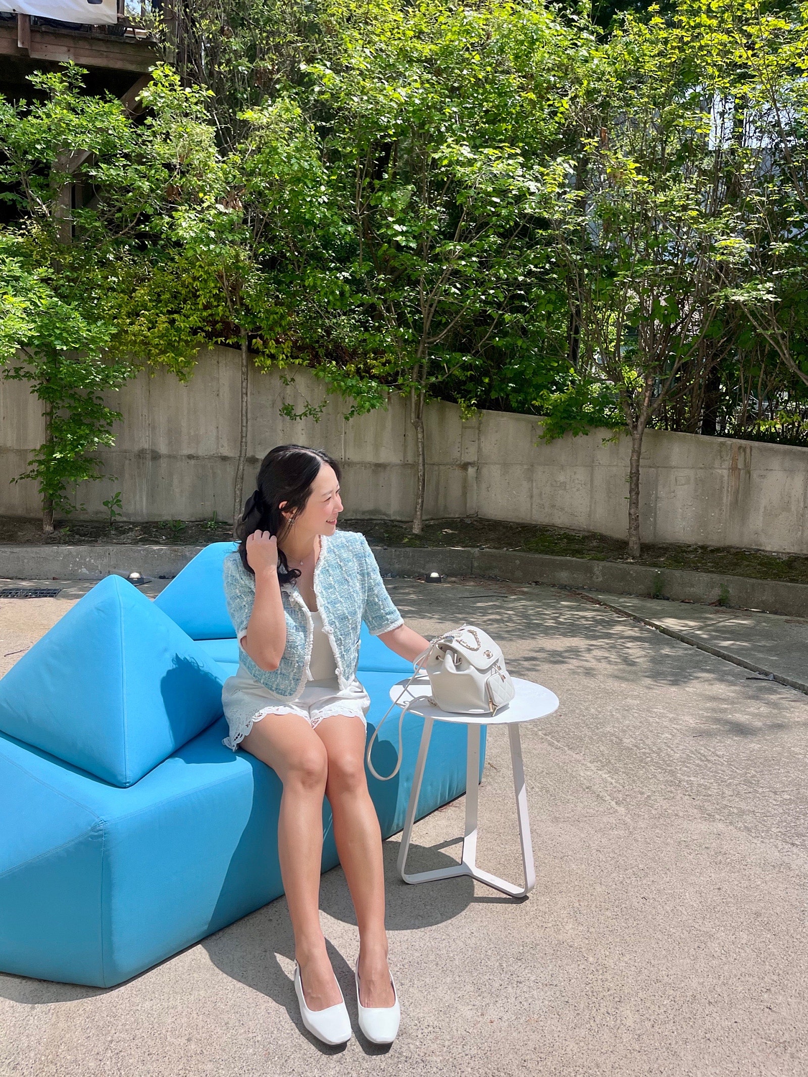봄과 여름 사이라서 밝은 톤으로 코디했는데 그래서인지 오묘한 마인 자켓의 컬러가 더 청량해 보이고 이뻐 보이더라구요🩵