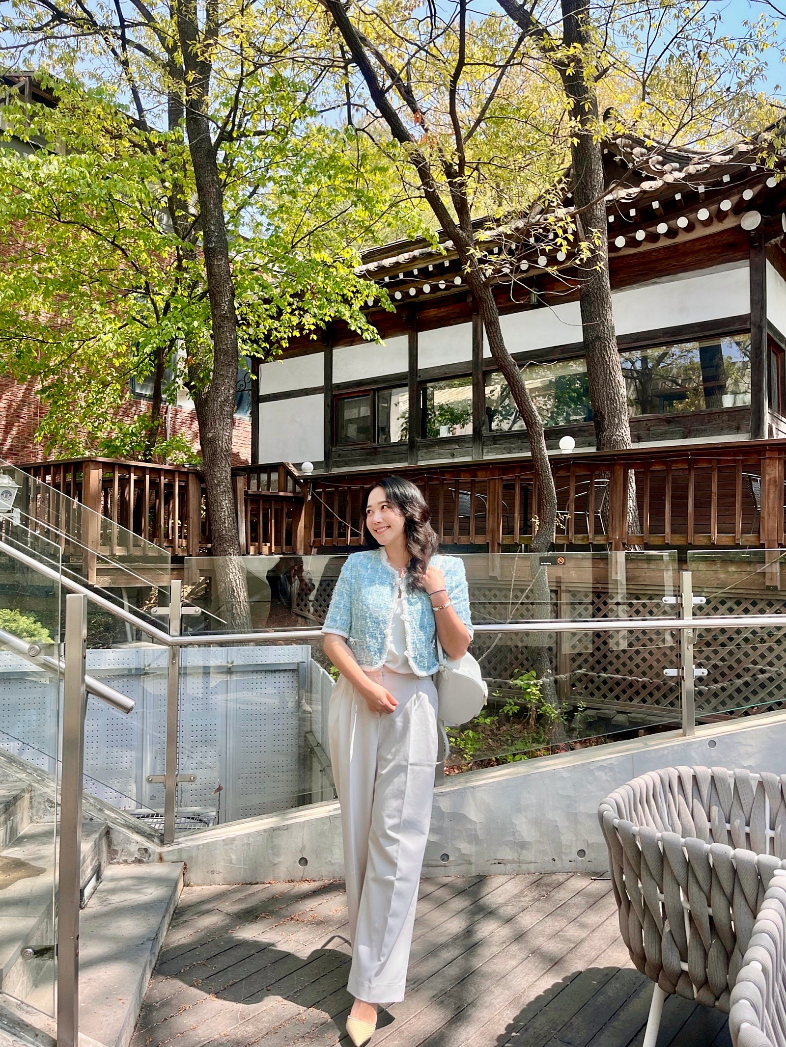 이렇게 실크탑+와이드 슬랙스에 오픈해서 입으니 제 체형의 단점이 다 보완되는 마인의 트위드 자켓이라서 '역시 마인이 마인했다'