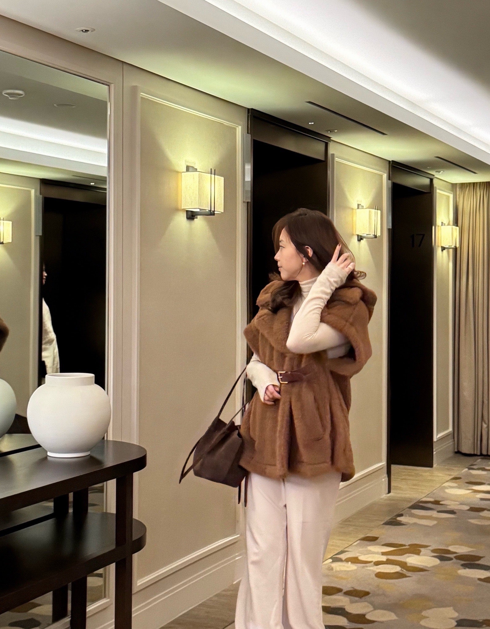 사실 막스마라 라노소 입으려고 가져왔는데 실내에선 너무 더워서 입고 사진만 찍고 다시 갈아입고 다음 날 밖에 나갈 때 입었어요.