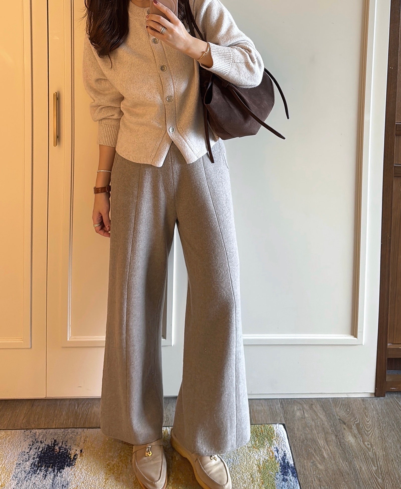 편하게 먹으려고 니트 셋업으로 갈아입었어요.