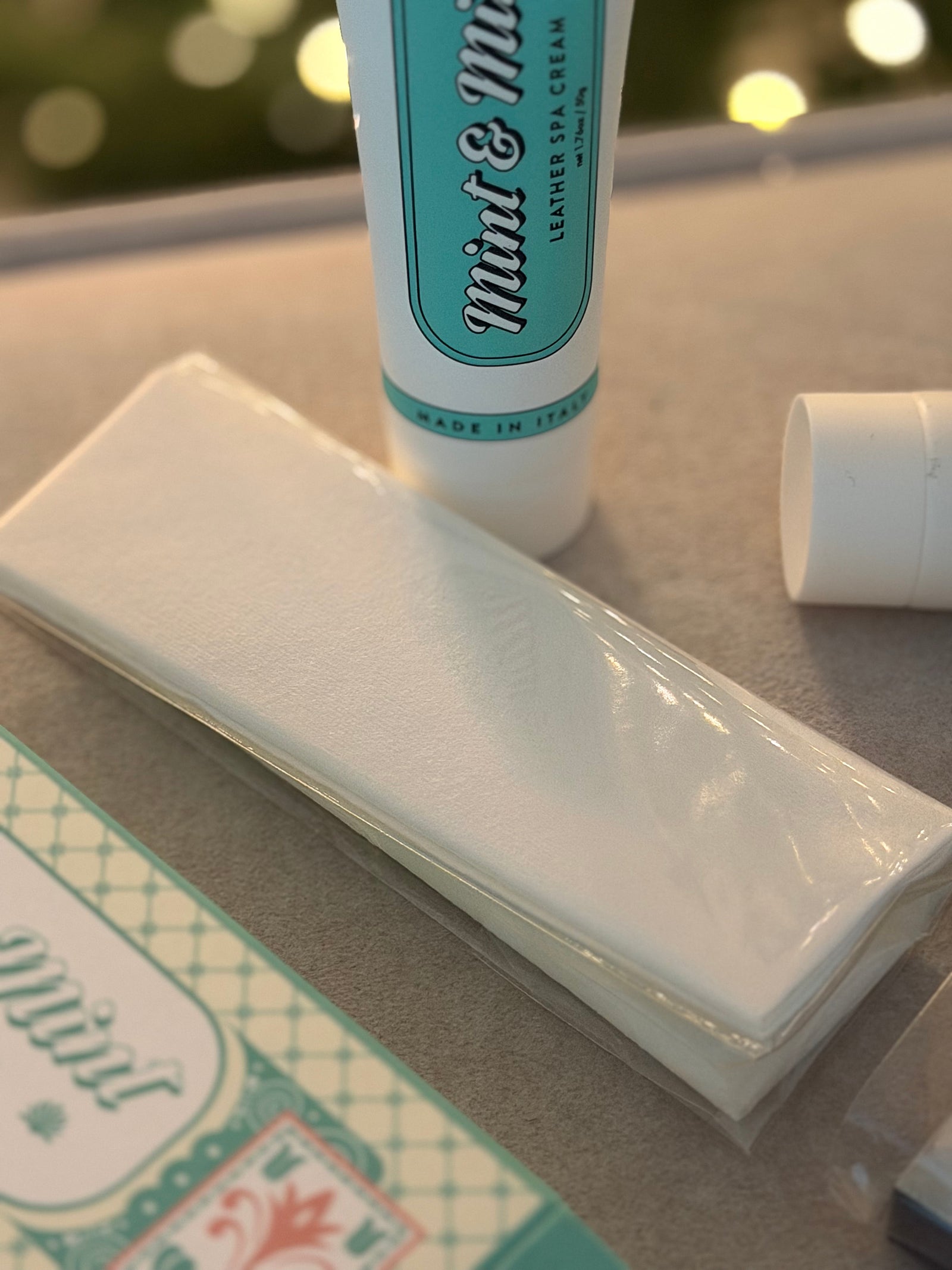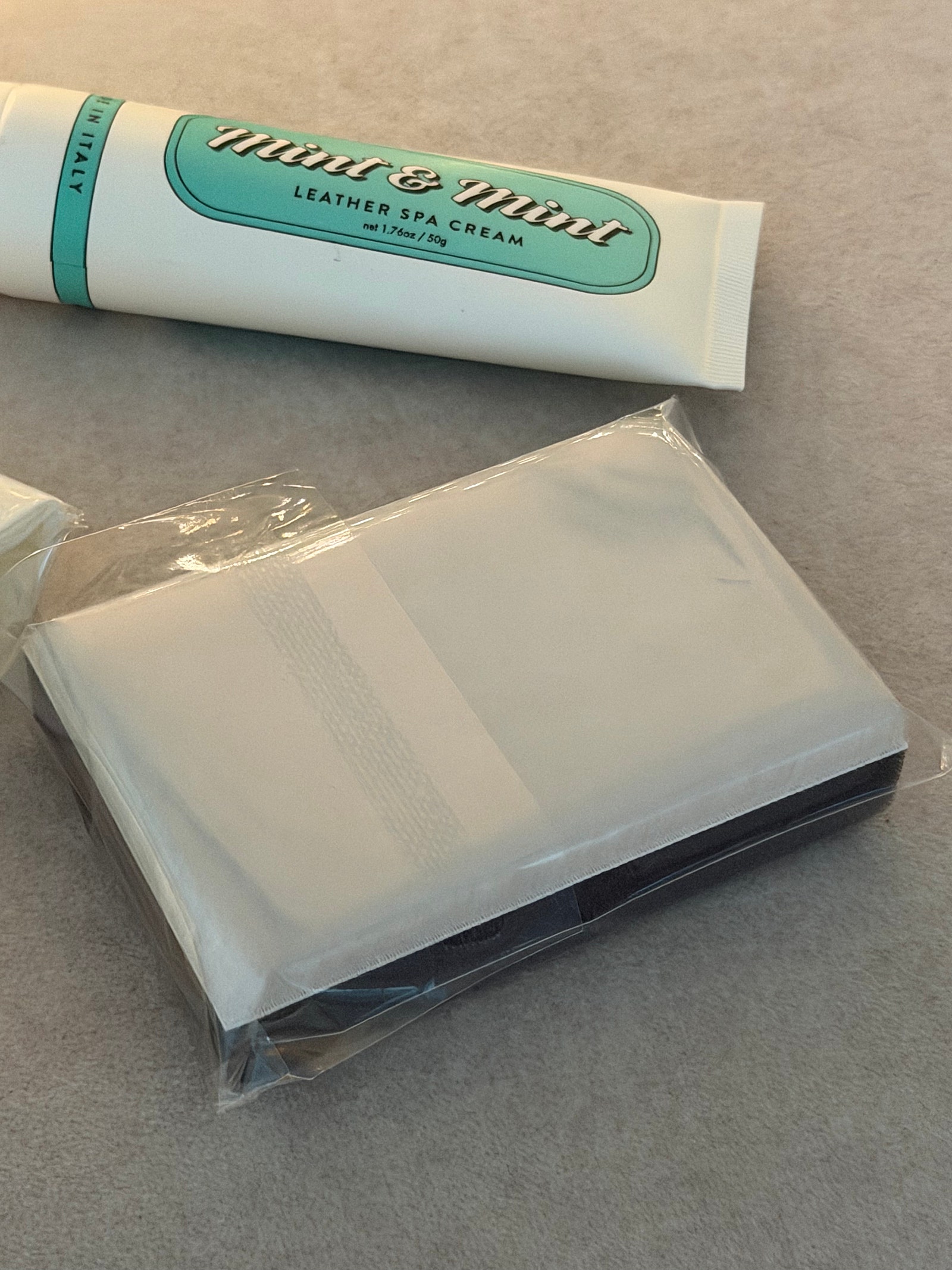 기존 패키지를 오픈하면 천이 들어있는데, 이번에는 민트앤민트에서 출시 한 ’레더 나노 브러쉬‘ 함께 사용해서 보여드리려 해요.