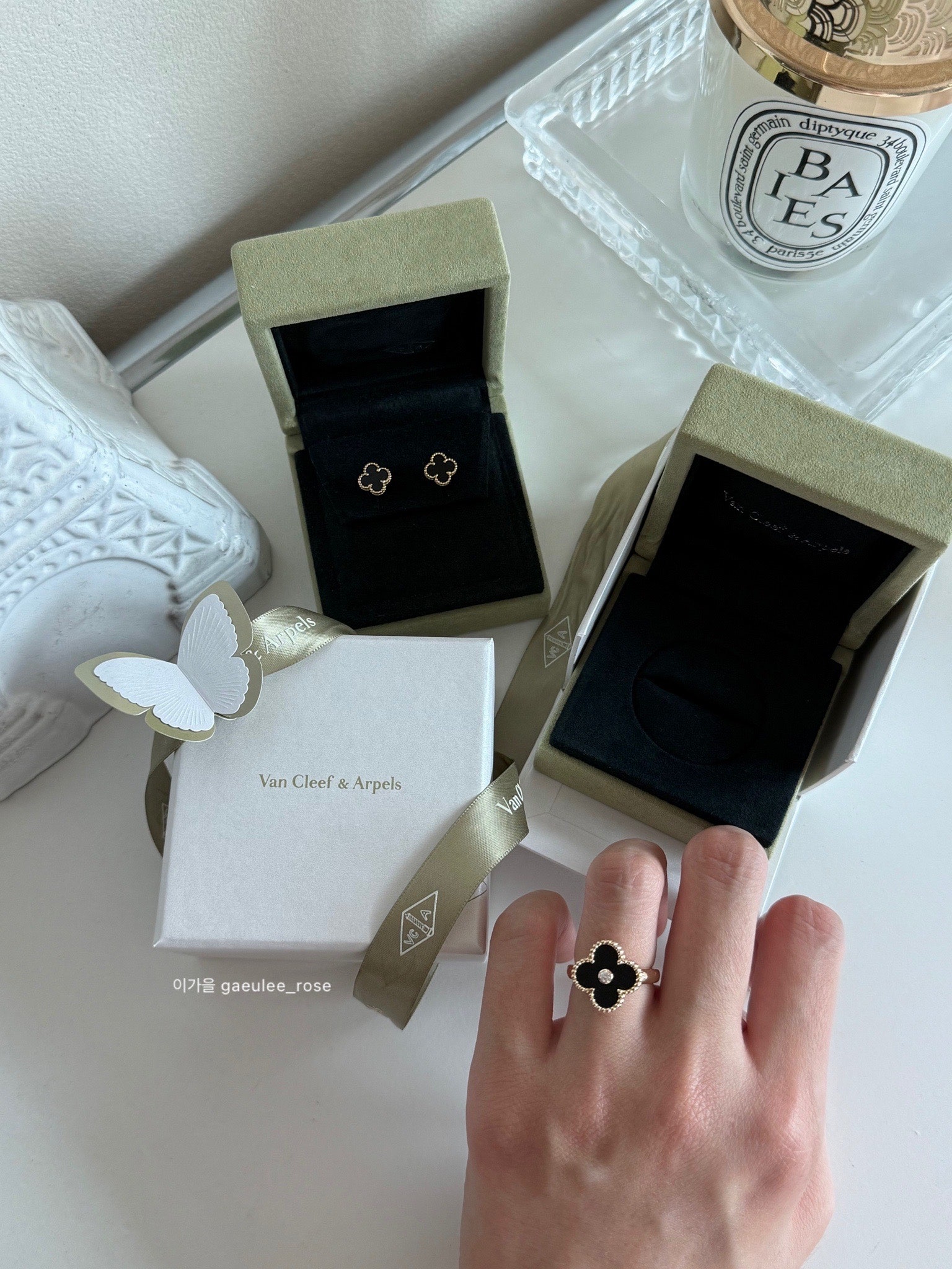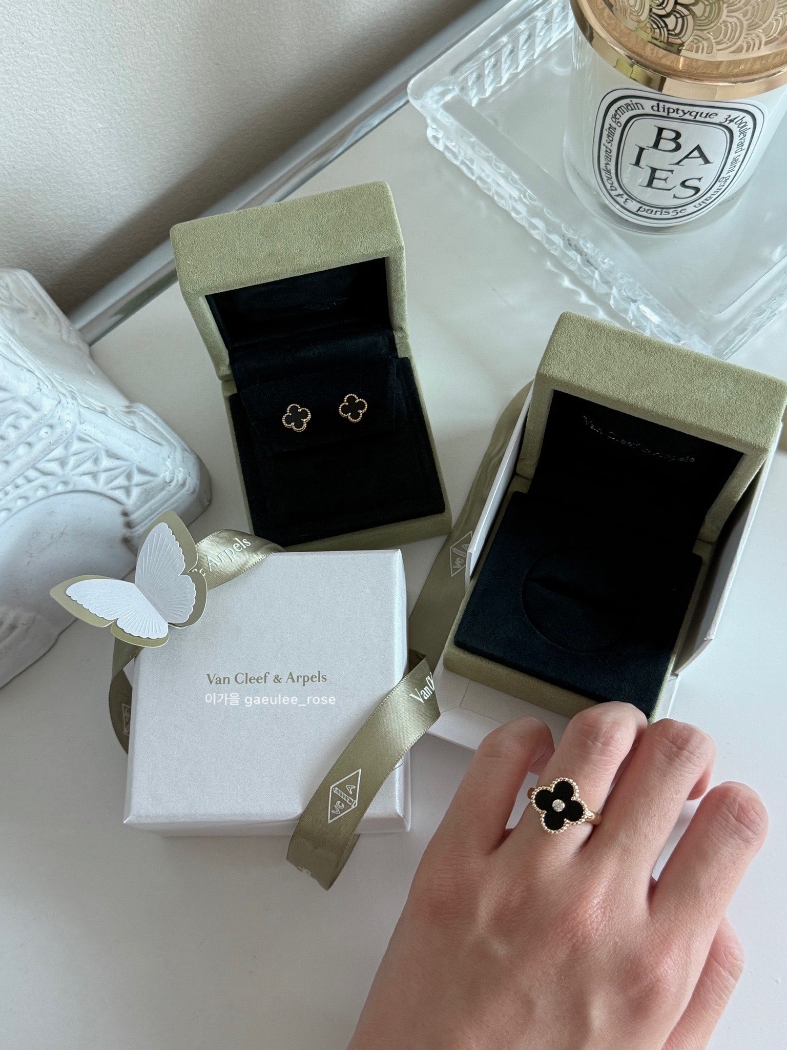 반클리프 알함브라 귀걸이 & 반지 세트 후기🖤 마오펄(마더오브펄) vs 오닉스 vs 화골 비교