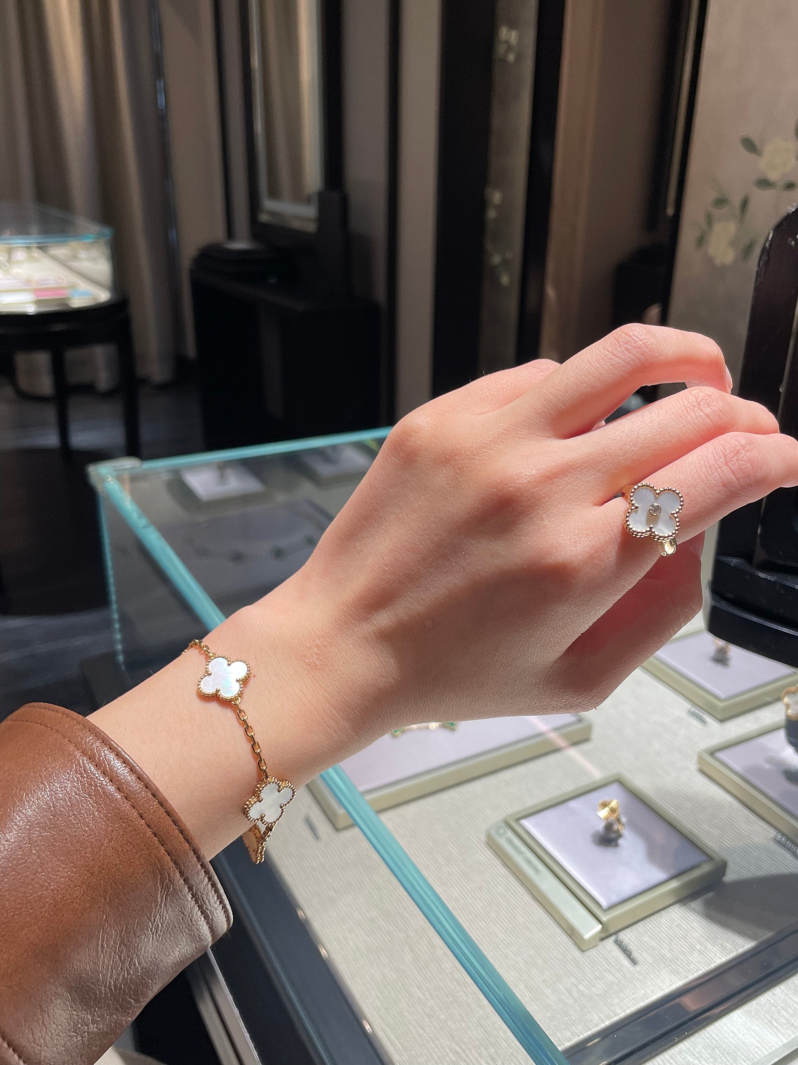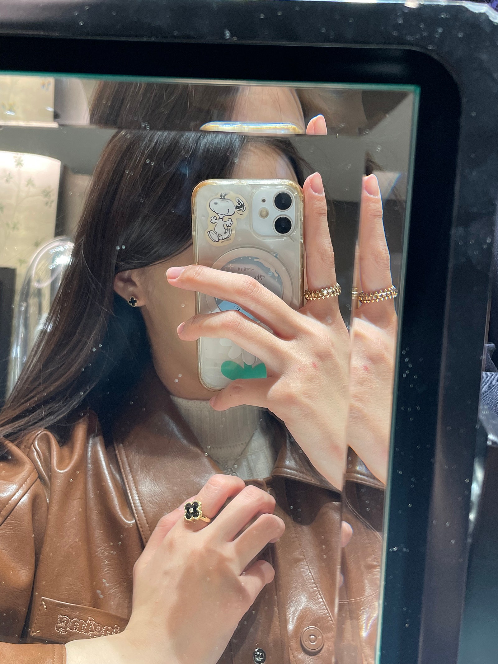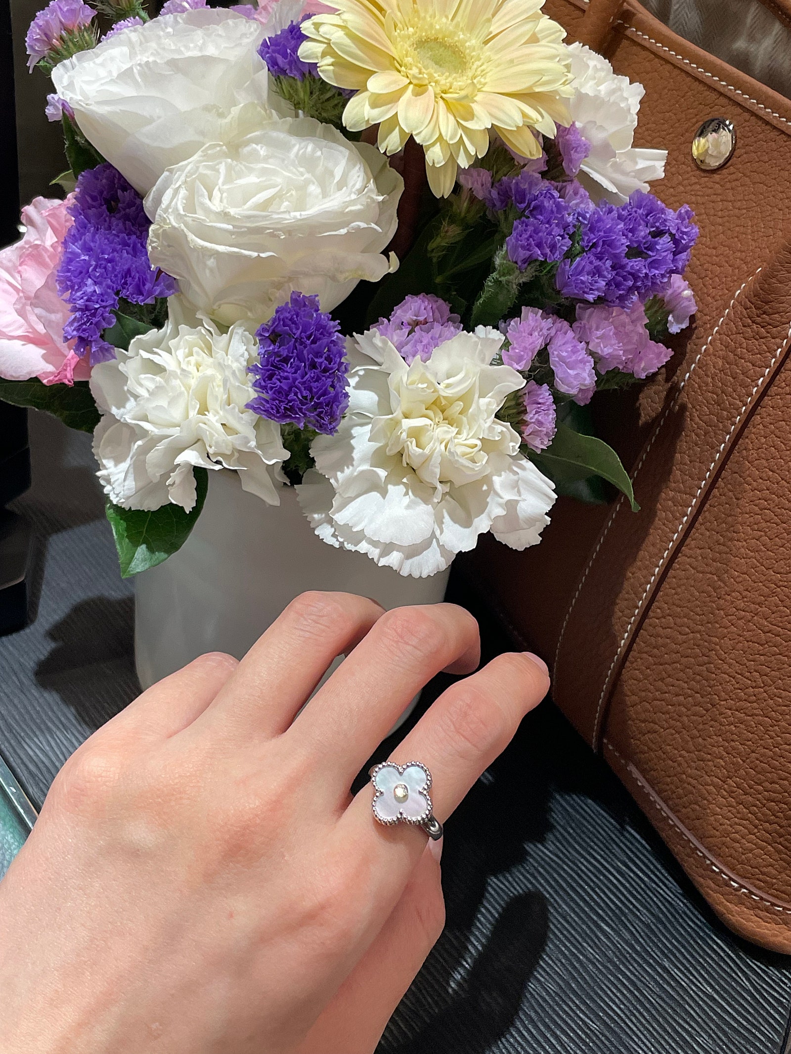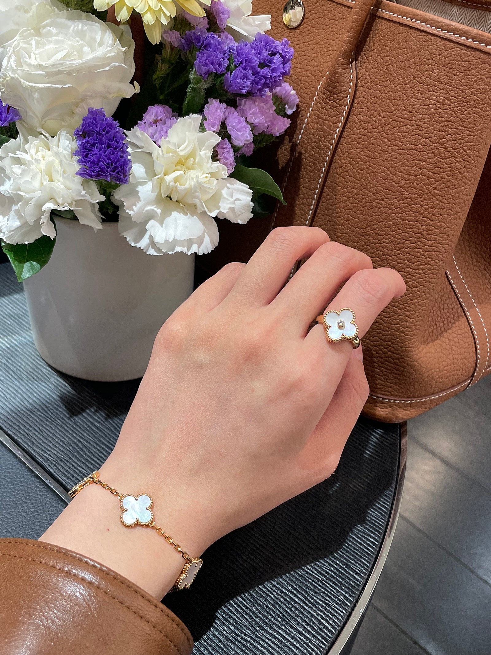 먼저 알함브라 화골 마오펄(화이트 골드 마더오브펄) 반지는 빈다(빈티지 다이아) 목걸이와 정말 찰떡이었는데요.