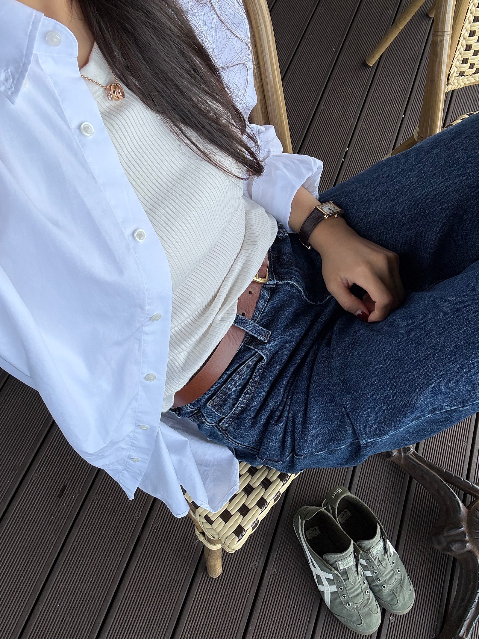 이날 저는 베이지 룩으로 맞춰 입었는데 잘 보이진 않지만 이런 룩에는 까르띠에 탱크 솔로가 아주 딱입니다요.