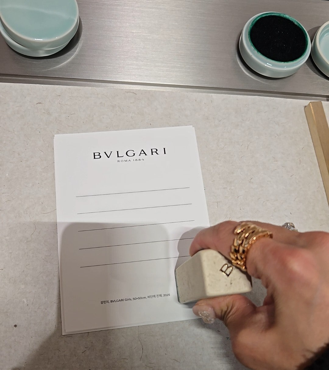 불가리의 시그니쳐 도장으로 스탬핑 해보는 코너도 있었어요.