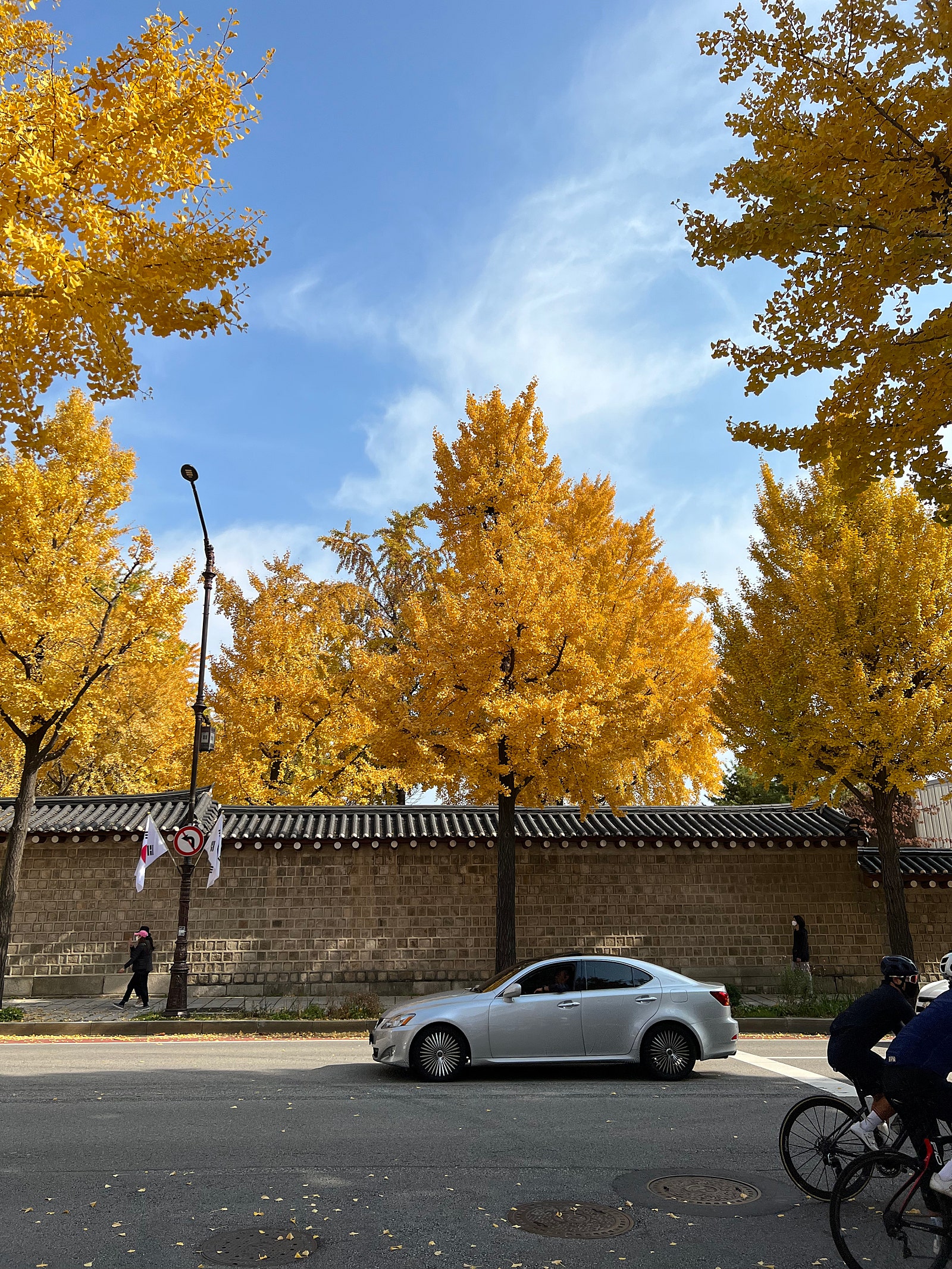 서울에 많은 단풍 명소가 있지만 저는 고즈넉한 매력을 뿜는 삼청동 쪽 거리 정말 좋아합니다. 아직 무르익진 않았고 다음 주가 피크일 거 같아요.