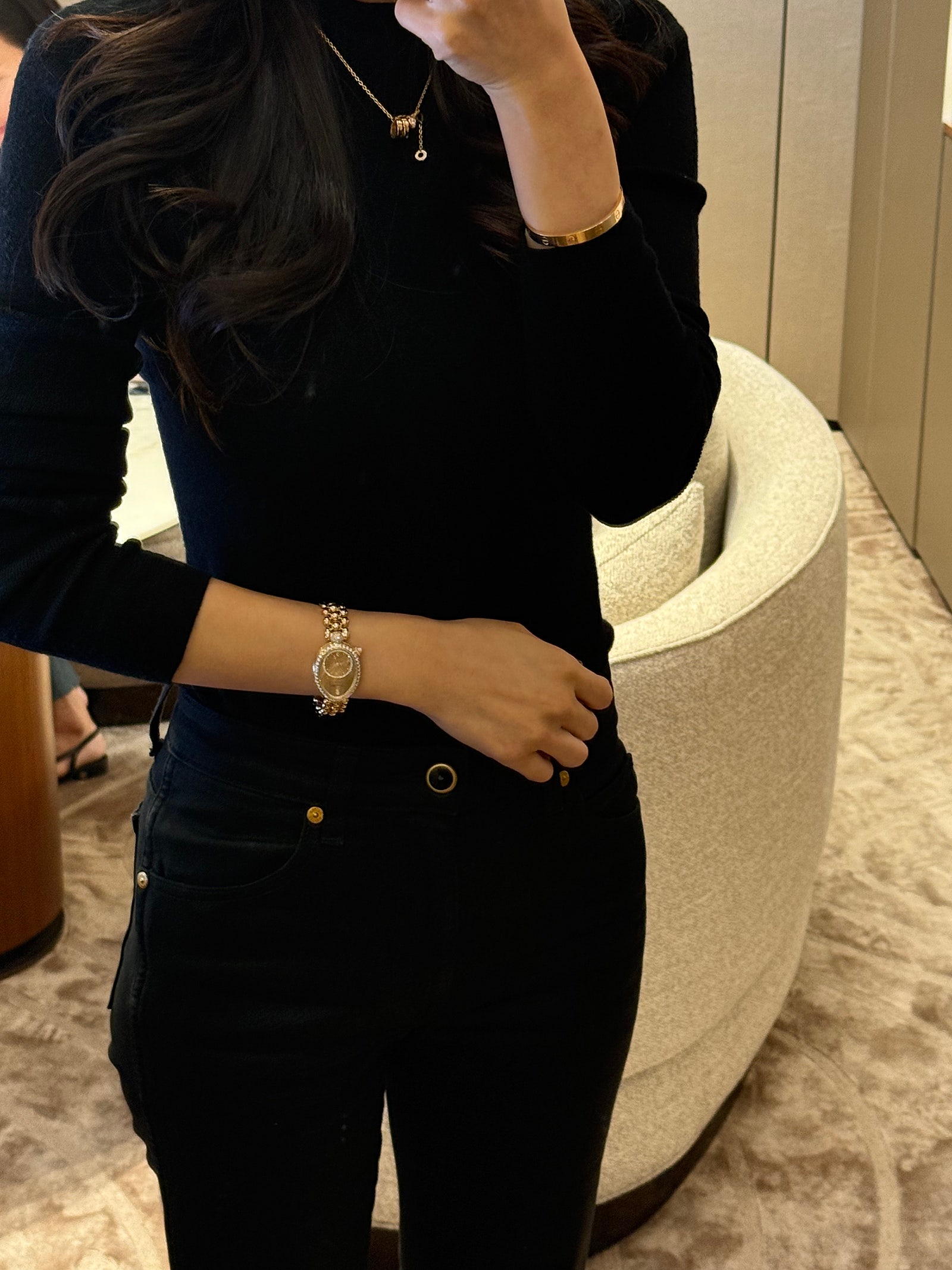 실제로 이 브레이슬릿은 로즈골드와 골드 그 사이 어딘가의 오묘한 골드 색상으로 "브레게 골드"라 표현을 하시더라구요!