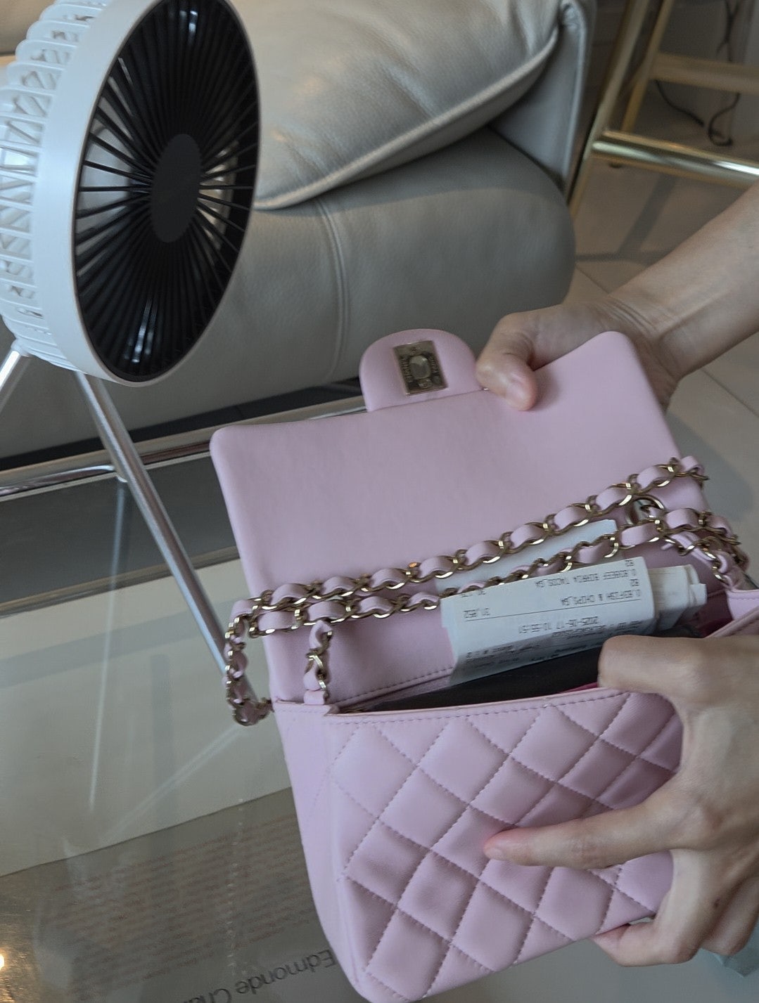 소중한 샤넬 백 가죽 손상 없이, 뉴미니 본연의 실루엣은 유지하면서 손쉽게 길이 조절하는 꿀팁 직접 고안해 봤어요.