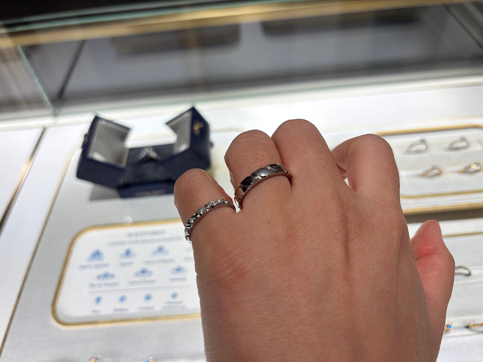 하나는 다이아가 있는 것으로, 나머지는 플레인으로 레이어링 하여, 좀 더 감각적이며, 센스있는 스타일링이 가능하다.