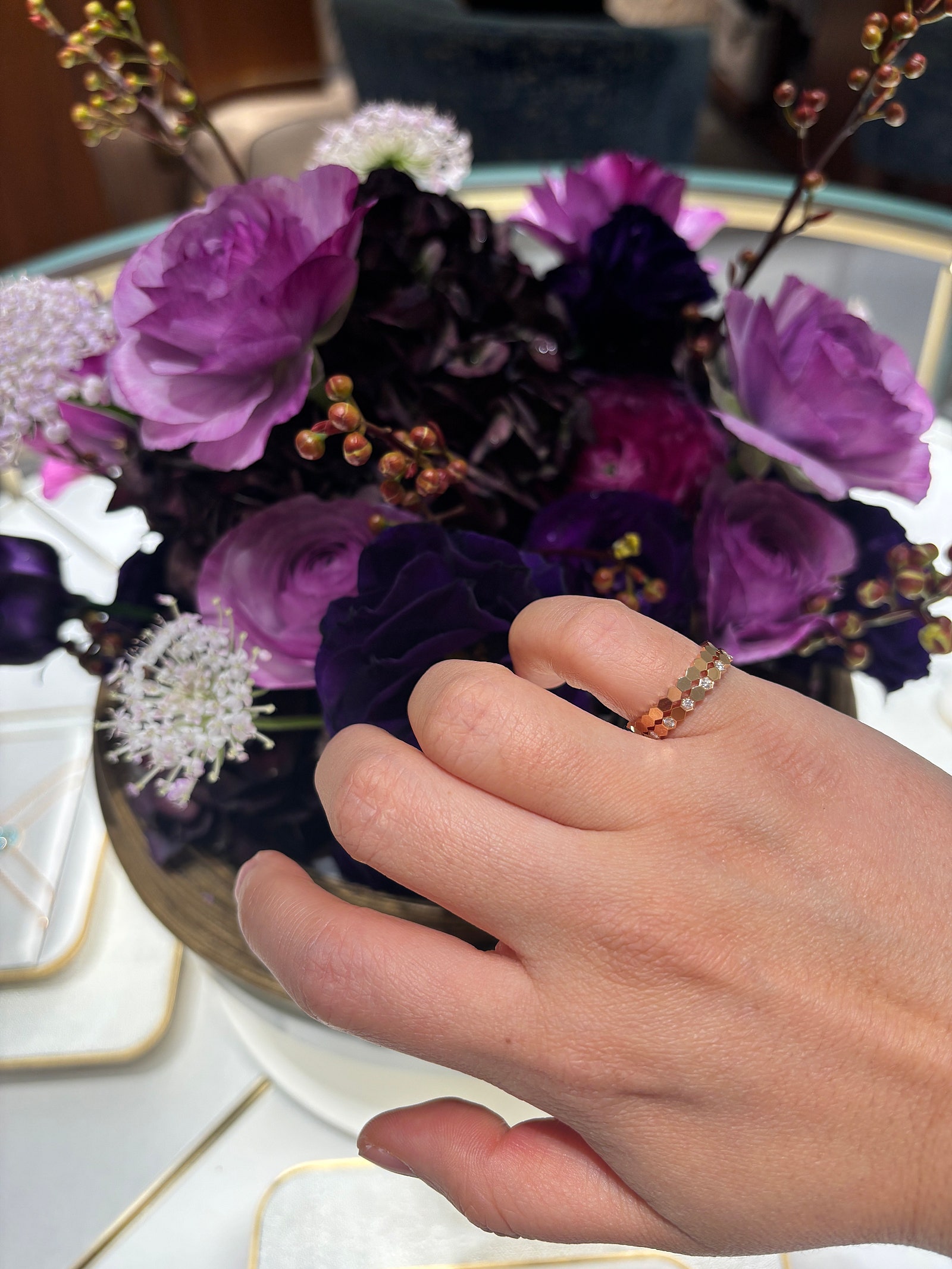 말 그대로, 비(Bee) 꿀벌에게 영감을 받은 링으로, 육각형 벌집 형태랍니다.