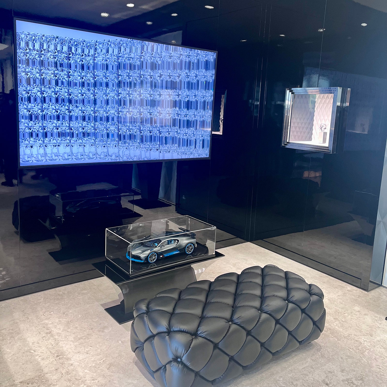 부티크 매장으로 들어가면 제이콥앤코와 콜라보한 자동차 회사인 부가티 모형이 전시되어 있고, 좌/우측에는 쇼케이스에 시계가 전시되어 있어요.