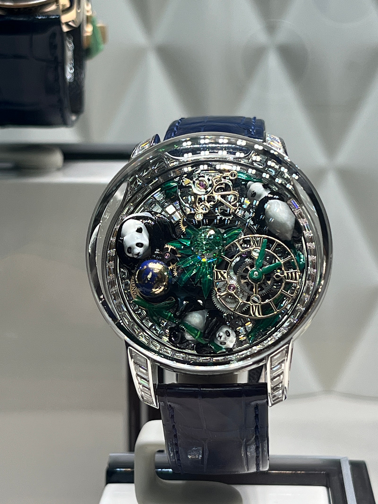 이것도 아스트로노미아 시리즈인데 왼쪽 시계는 시계 안에 판다와 대나무가 있어요.