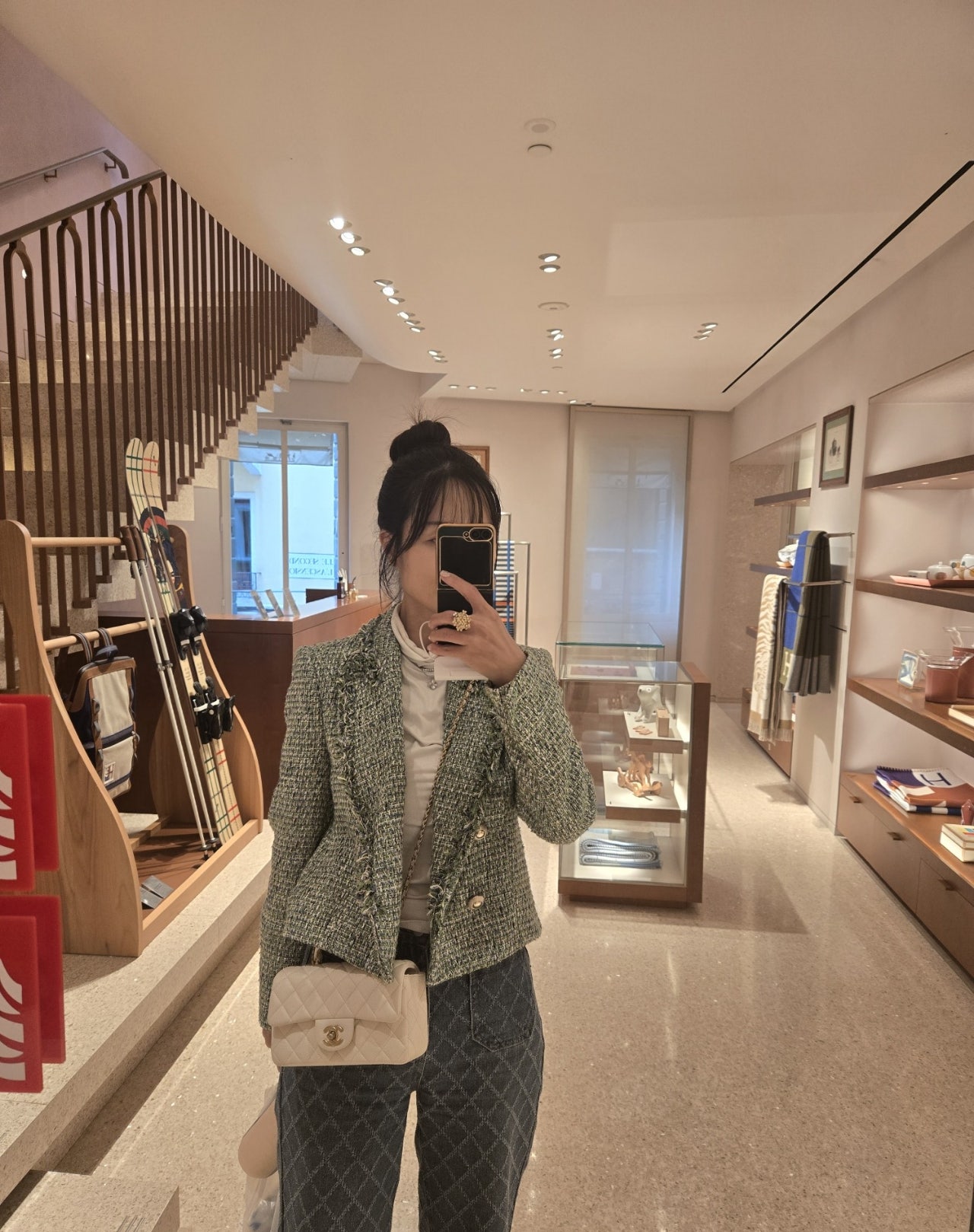매장도 봄 시즌을 맞아 화사한 컬러가 많이 보였어요. 마침 디피된 상품과 그날 코디한 자켓이 컬러 매치가 돼서 더 반가웠어요. 이날 저의 룩에 반클리프 프리볼을 매치하니 더 화사한 느낌으로 기분 좋은 쇼핑을 했답니다.