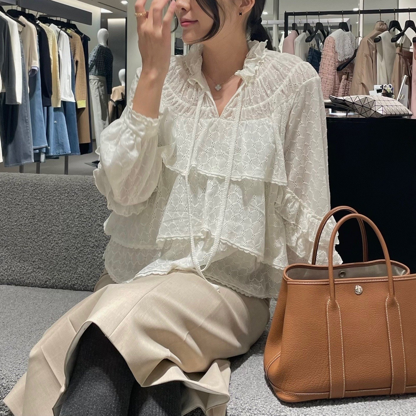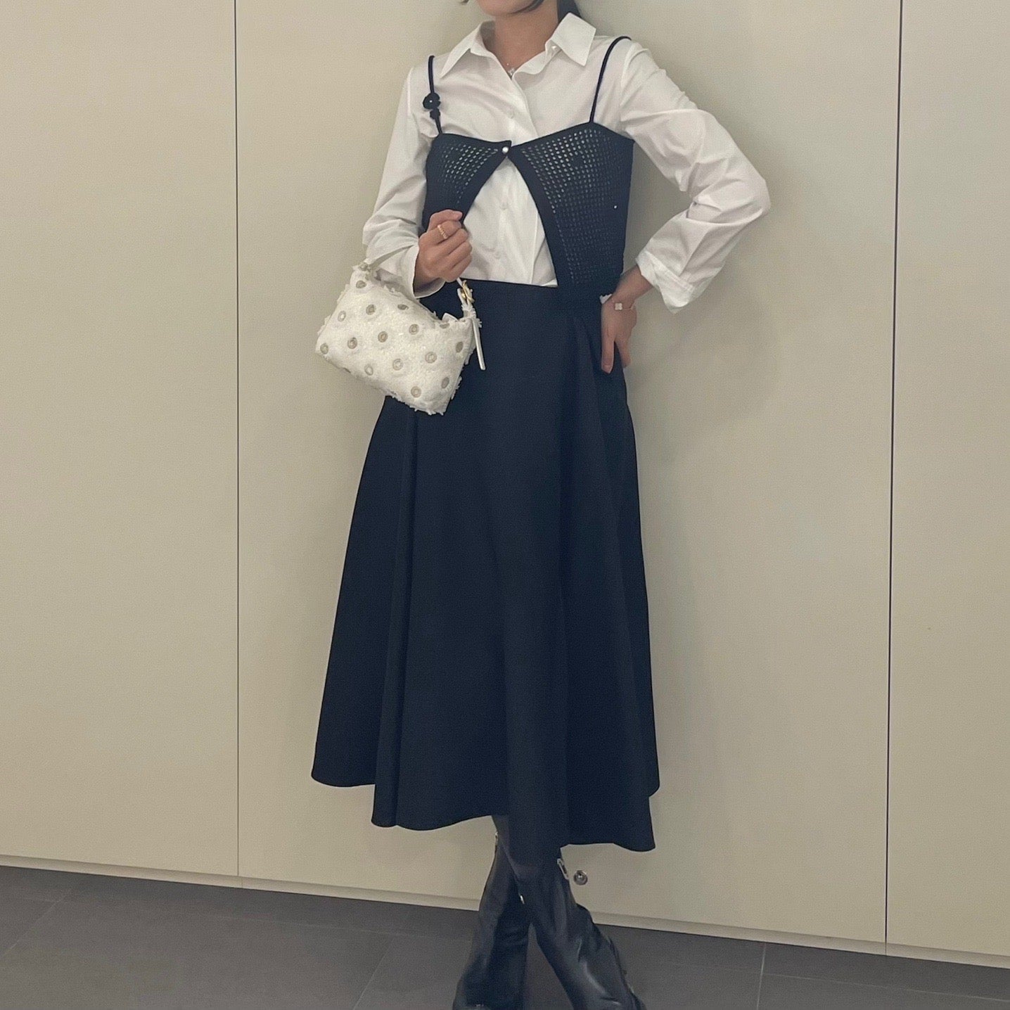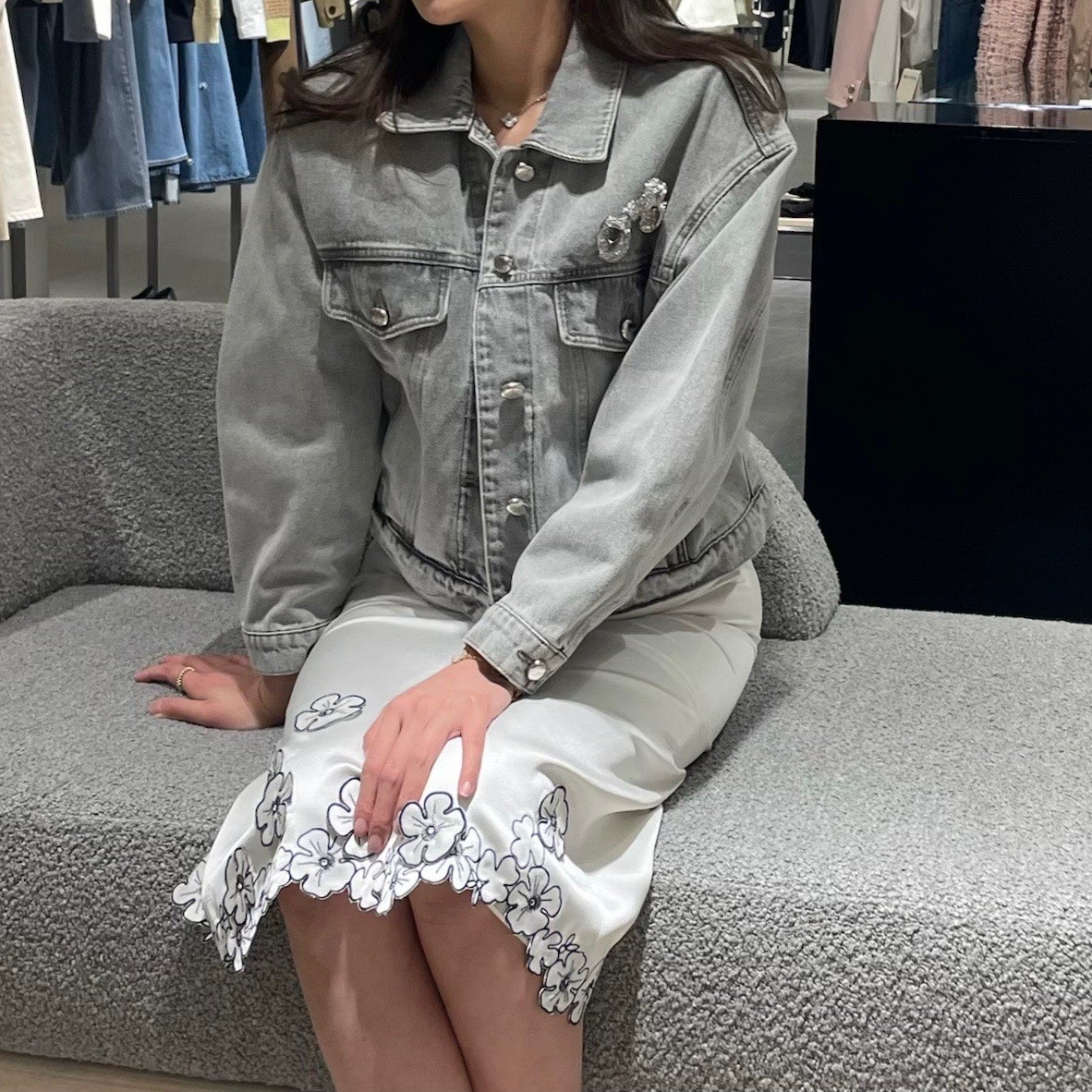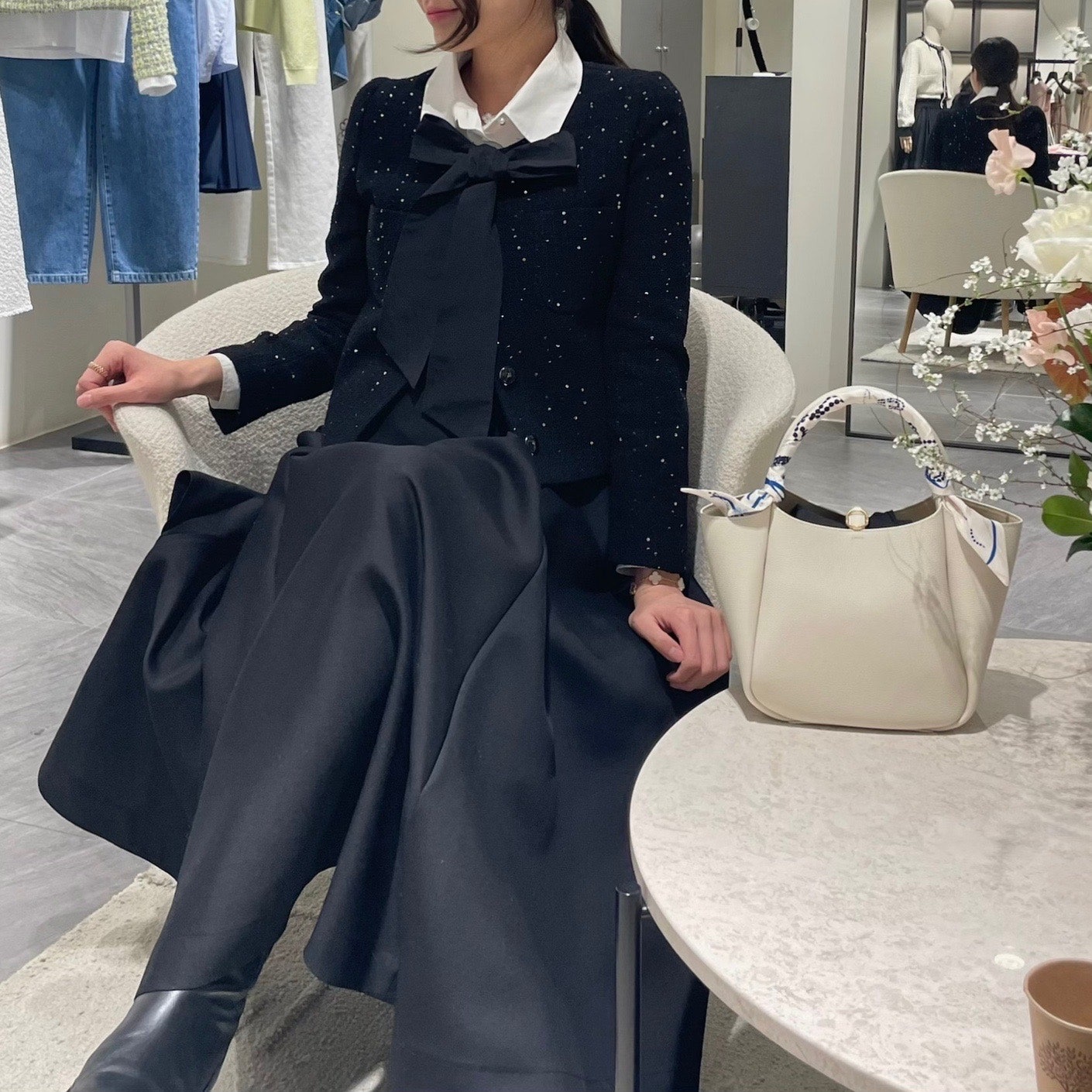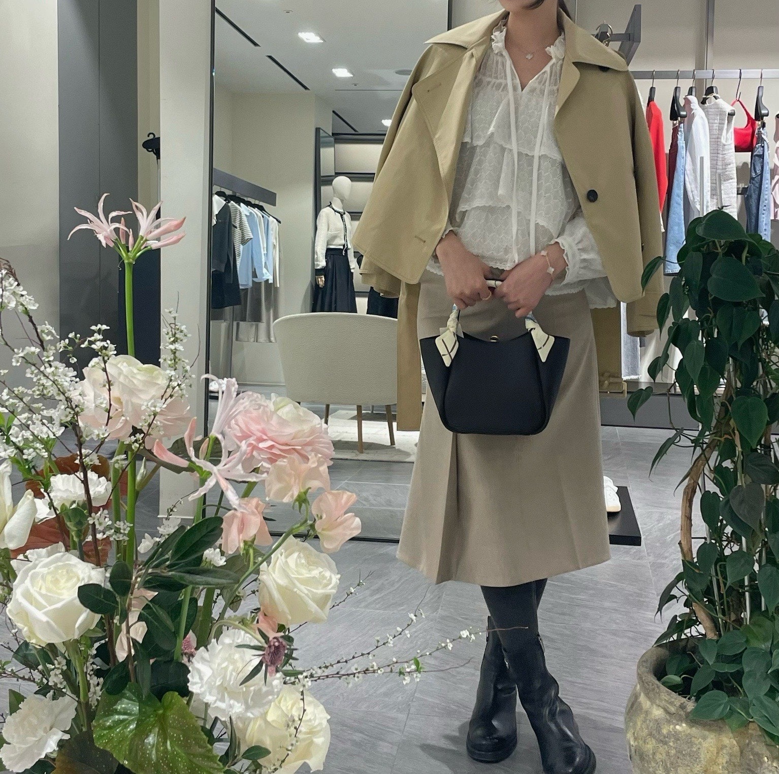 다양하게 활용 가능할 것 같더라구요. 물론 함께 코디한 플라워 디테일 스커트도 너무 예뻤구요.