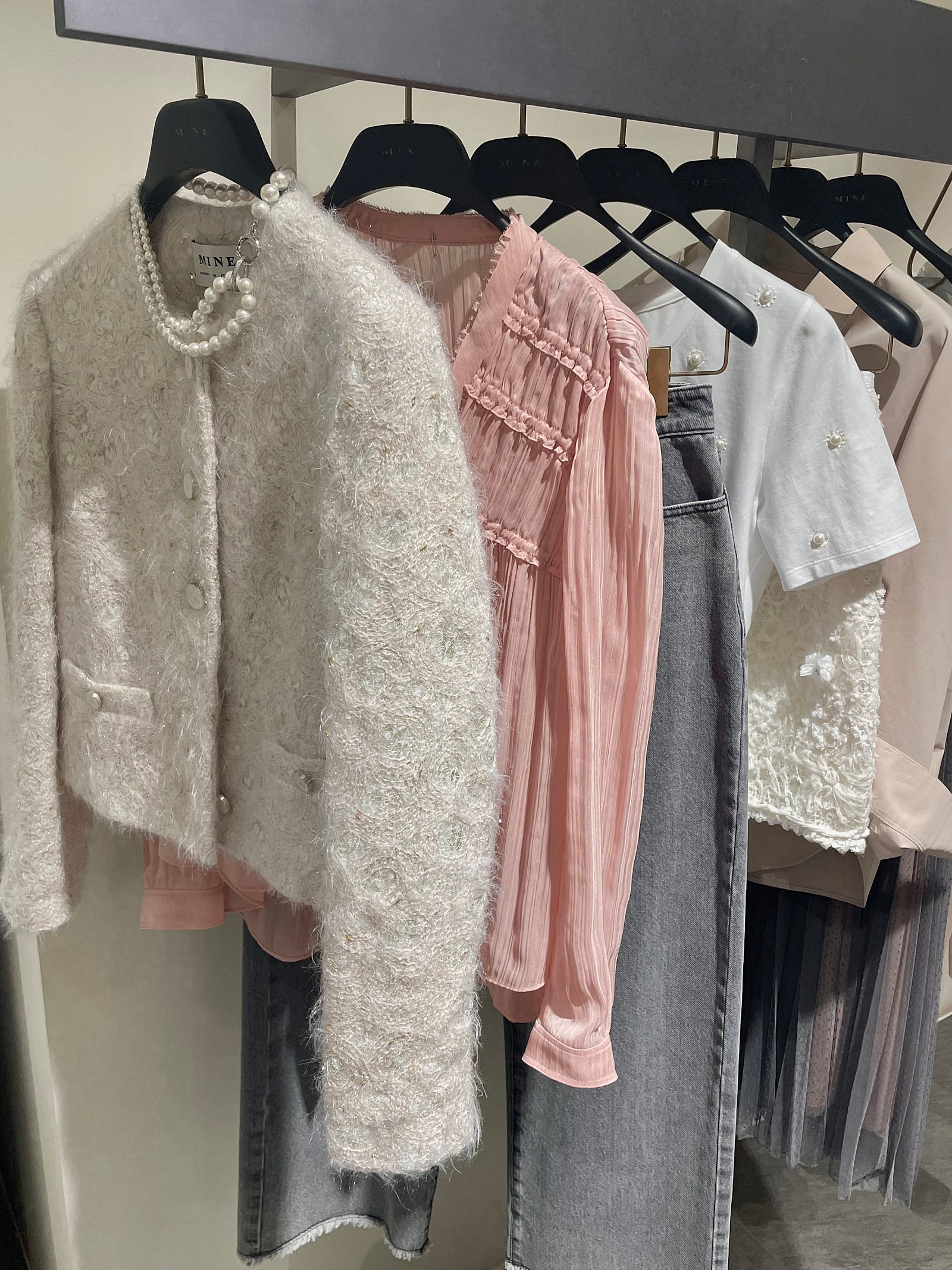 한섬 옷들을 워낙 좋아하는 저는 마인 매장 방문 전부터 위시 리스트를 가득 담아두고 실물로 신상품을 구경하고 왔어요. 정말 역대급으로 이쁘더라고요.