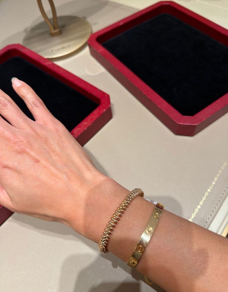 티파니 링크 팔찌 엄청 땡겨서 가격이올랐음에도 매장가봤는데 전 탱크루이가 더 땡겨서…. 패스! (미듐 9000불 스몰 6700불) 전부터 위시였던 탱크루이 스몰은 보자마자 왜 다들 그리 좋아하시는지 알겠더라구요. 은은하니 너무 이뻤어요🥹 롤 데이저스트 28 문신템인데 또 다른 매력! 클래쉬드 팔찌도 위시였던지라 해봤는데 뱅글이 있어서그런지 확 땡기진 않았어요. 대신 이어링 해봤는데 너무 맘에 들더라구요ㅠㅠ 미니도 해봤는데 스몰이 훨씬 나은거같아서 데려왔어요. 가격차이도 많이 안 나더라구요! (미니 4600불정도 클래쉬드 스몰 팔찌 8850불) 기념일이냐 그래서 결기라고했더니 샴페인도 주셨어요❣️ 탱루 생각보다 작아서 귀여운 맛이 있네요! 오늘 맡긴 산토스뒤몽 자리 남겨 놓고 정리해봤어요✨ 가격-텍스전 탱루 11600불 이어링 5200불 장소-미국서부 날짜-02.28.2026