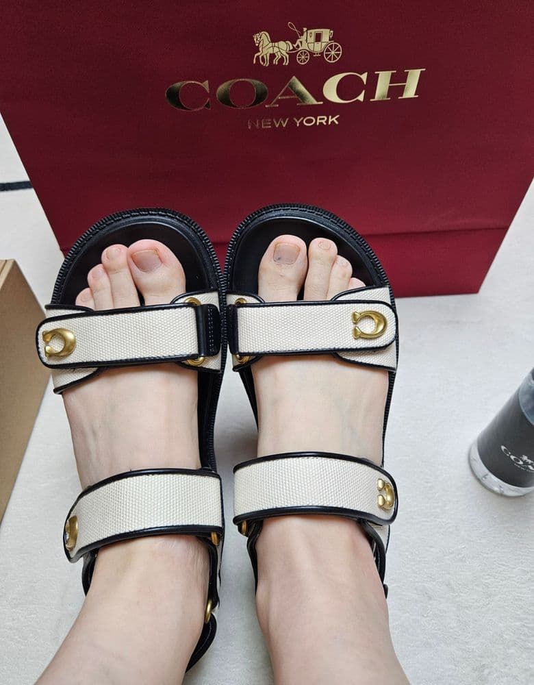 코치 샌들마리7팔로우코치 샌들구매년도2026년지나가다가 넘예뻐서 샀는데 가격도 넘 저렴하고 괜찮네요 코치에서도 물도 챙겨주심 ㅎㅎㅎ 페디큐어안해서 발톱 민망하지만 오늘 화이트데이 셀프선물입니다 2026.03.14