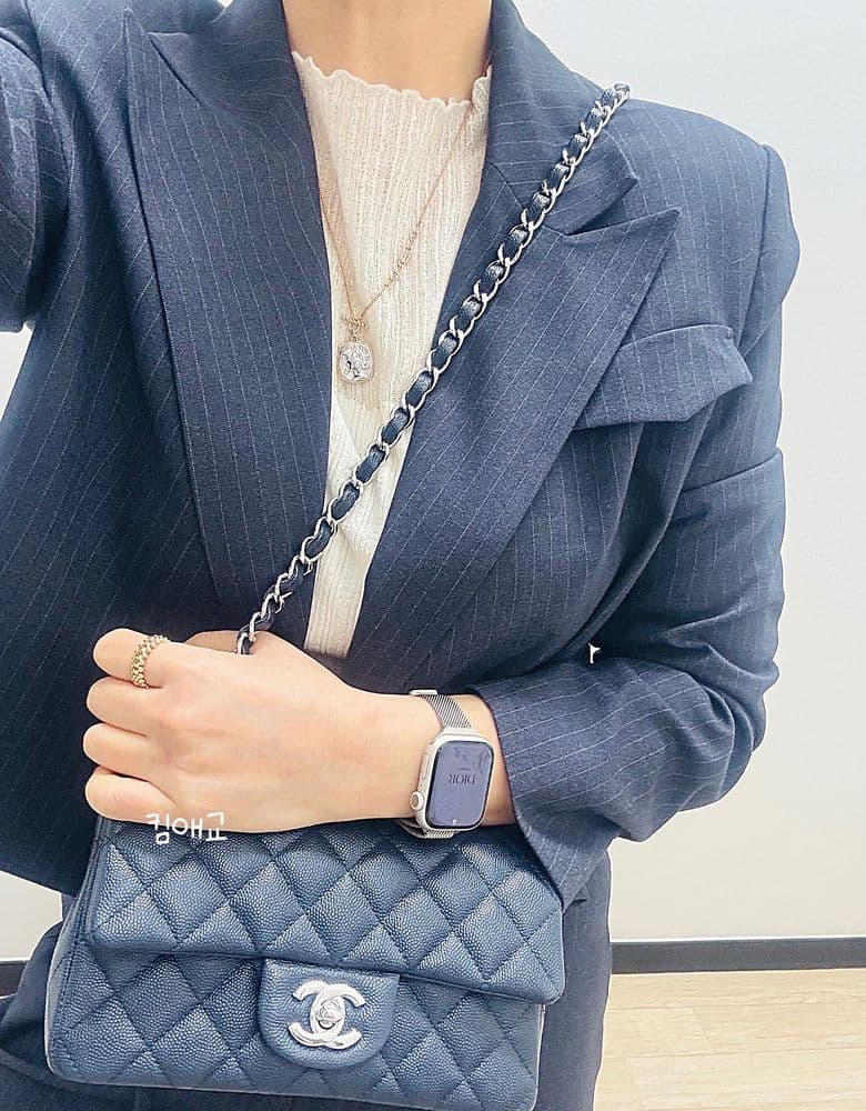 <장/단점> 뉴미니 캐비어는 말모말모쥬?! 탄탄해서 모시고 다니지 않아도 되고 무엇보다 키작녀한테 사이즈가 완전 찰떡이에요💕 <구매일&방문일/장소/가격> 시크 <리뷰> 퍼스널컬러 진단을 받아보지는 않았지만 자가진단으로 웜톤으로 살고 있어서 그런지 네이비, 블루 이런컬러는 잘 안 들고 안 입어요😅 그래서 요 뉴미니 네이버 캐비어.. 더군다나 은장을 드는 날은 챠콜컬러로 옷을 입는다거나 아님 스카이 블루 코트를 입을때 뿐입니다ㅋㅋ 얼마전 스트라이프 셋업을 사서 오랜만에 꺼내어 들어줬는데 예쁘네요?ㅎㅎㅎ 자주 못 들어줘도 너무 소중하고 귀하기 땜에 보낼수 없네요💕