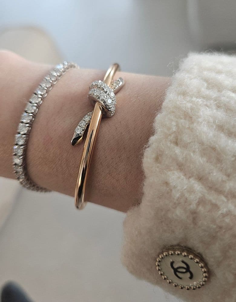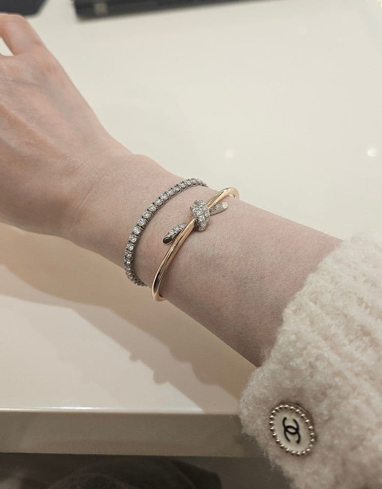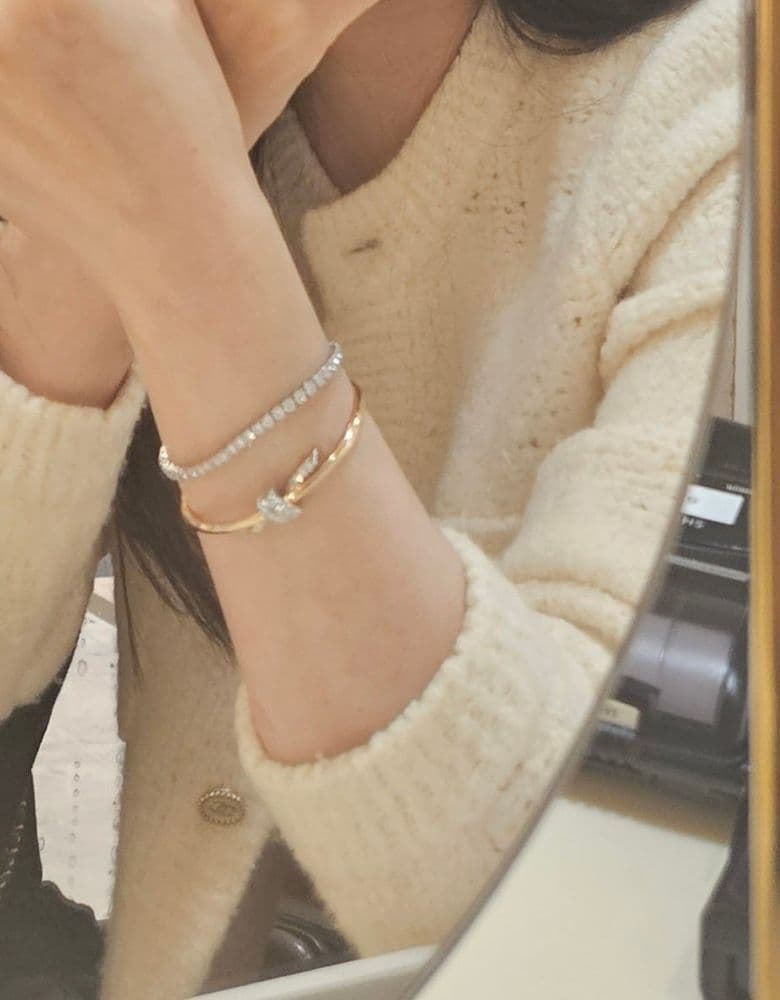 고민하다 인상후에야 사게된게 약간 맘이 쓰리지만 결국 들였습니다 역시 맘에들어온건 하루라도 빨리사는게 이득임 ㅜ 너무 맘에들어요 다이아도 크고 엄청 반짝이고 갠적으로 가격대비 가성비 갑인거같아요ㅎㅎ 확대샷 한장더 살짝 멀리서도 찍어봄 사진을 잘못찍는편이라 실물을 반도 못담네요ㅜ 노트팔찌는 직접 본사람들은 더 만족한다는 후기 많이봤는데 정말 그런거같아요 팔찌 고민하시는분들 노트 강추드립니다