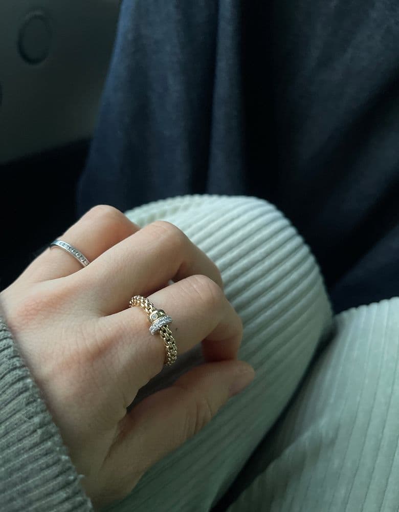 반지 까르띠에 클래쉬드반지를 구매하려고 했는데 친구꺼 껴보니 저랑은 어울리지가 않더라구요 고민하다가 포페링에 갑자기 빠져서 롯본에서 구매했어요 원래는 로즈골드컬러로 사려고 했는데 옐골이 껴보니 훨씬 화사하니 이쁘더라구요 사이즈도 스몰 미듐 라지 이런식이어서 왼손검지 오른손 검지 중지 다 바꿔서 할 수 있는게 너무 좋았습니다 미듐사이즈로 해서 가격은 오르기전인 399 볼 때마다 이뻐서 너무 만족하고 있어요^_^