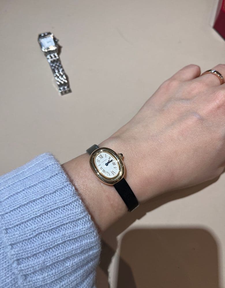 미니 시계 좋아해서 크기가 무척 만족스러워요! 다만 팬더 미니에 비해서 시계 알맹이 부분이 튀어 나와 있어서 착용감은 팬더가 더 좋아요! 신세계에서 10월 후반? 11월 후반? 그쯤에(가격 인상 전) 완불 웨이팅으로 990만원에 구매했어요! 12월 쯤에 수령했네요. 금통 하나 은통 하나 갖추니까 뭔가 든든하고, 사실 보석이나 악세서리 착용을 안 하는 편이라 시계가 악세서리처럼 보이는 효과가 있어요. 가격 인상 직전에 샀는데 사두길 잘 했다는 생각이 듭니다❤️ 귀욤귀욤 미니 시계 좋아요🙈