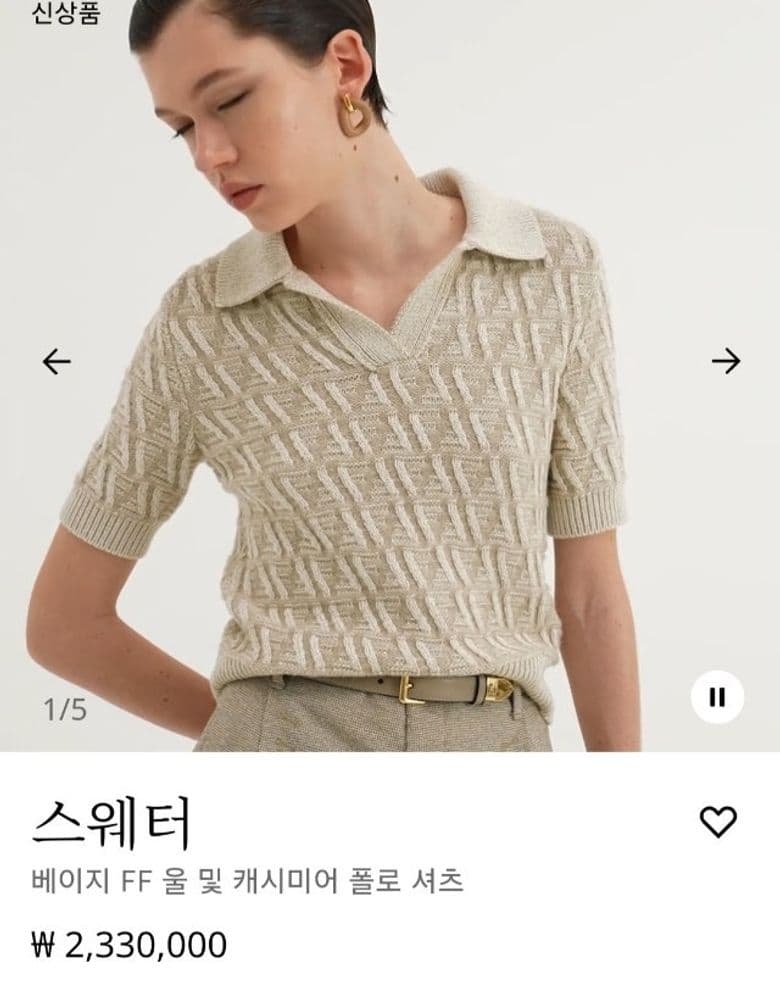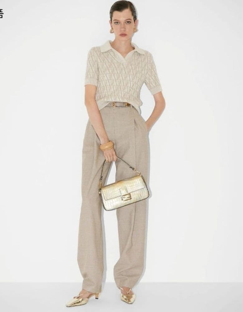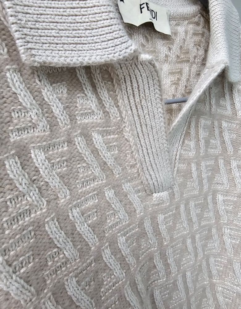 펜디, 베이지 FF 울 및 캐시미어 폴로 셔츠