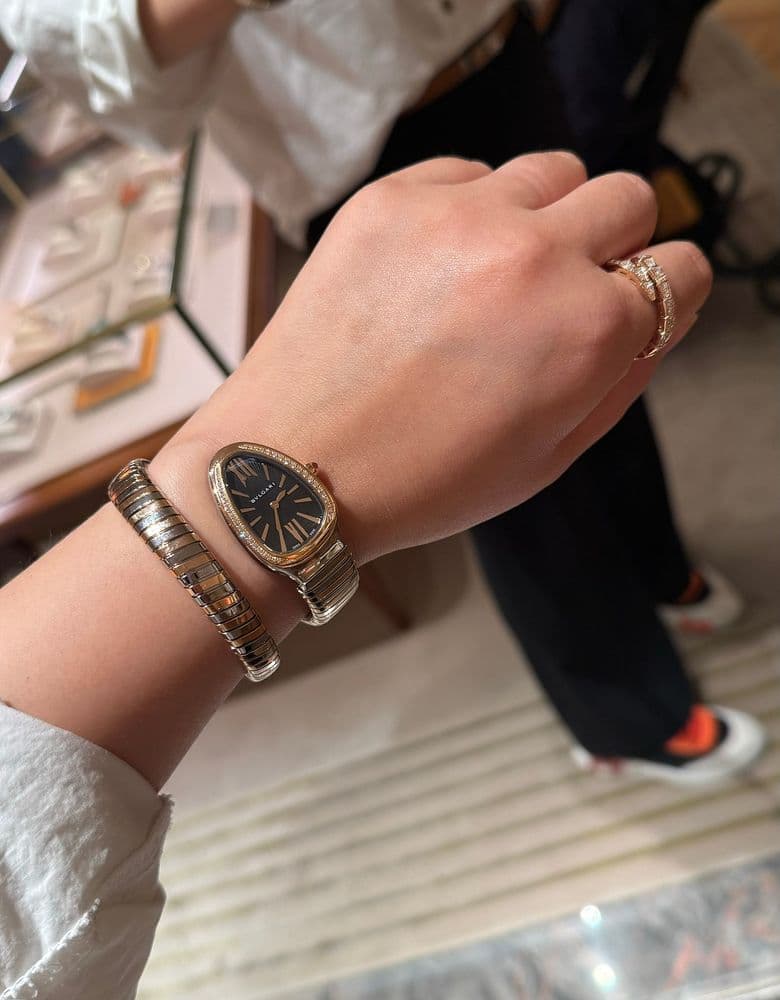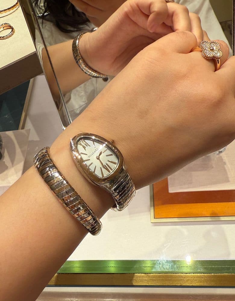 24년11월쯤 롯본/21.500.000원 생각보다 엄청 맘에들어요 :) 불가리 세르펜티 투보가스 시계 리뷰요!! 원래는 반지하나 사러갔는데요 갑자기 팔찌랑 반지랑살까 하나만 살까하다가 갑자기 셀러분이 시계도 가지고나오시는바람에 ㅋㅋㅋㅋ 화이트보다 블랙이 이쁘더라구요? 근데 차이는 블랙판이 다이아가 있어서 엄청 반짝했다는 거에요 ㅋㅋㅋㅋ역시 설탕은 포디못해!! 이전에는 세르펜티 반파베 목걸이 넘나 잘하고다니고 있었거든요 정말 차보고 착감겨서 구입했는데 평소 시계 잘안차다거 탱루이사고 좀 끼고다니다가 이걸 차보는 순간 우와 존재감무엇? ㅎㅎㅎㅎ 팔찌같은데 시계네!ㅎㅎㅎ 근데 다이아도있고 블랙판이라 고급지고 ㅋㅋㅋ 자기합리화 화이트판보다 블랙판다이아가 더이쁜거맞죠?? 가격은…후덜덜하지만 만족도는 좋아요 진짜 이전에는 이쁜가? 음..사는사람있나했는데 제가 샀네요; ㅋㅋㅋㅋㅋㅋ 리뷰가 많이 없는거같아 놀러와서 눈내리는 잠오는새벽 끄적여봐용 ㅎㅎ 긴연휴 설명절 잘보내세요 :)