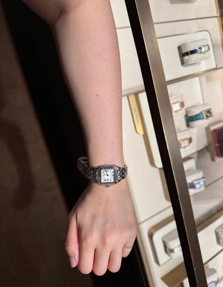 지방러라 눈팅만하다가 인상소식에 다녀왔어요 수원에 볼일이 있어서 근처인 판교현대로 다녀왔어요 미니는 너무 작았고(반지같았어요.. 제 손 기준엔) 스몰도 작게 느껴졌지만 가장 많이 팔린다고 하고 다음 시계는 큰걸로사시게될꺼니 이걸 추천하신다는말에 혹했어요 당분간 허리띠 졸라 매기로^^ 팔찌 반지 이쁜것 너무 많앗어요 인상전이라 다들 구매로 이어지다보니 시간이 꽤 걸리더라고요. 전 혼자가서 고민도 10분정도? 20분정도? 밖에 안한것같은데 나올때보니 한시간반지났더라고요. 구매하면서 테이블에 앉아 한시간 걸렸어요 물건 가지고 오시고 보여주시고 줄 줄이러 다시 가시고 보여주시고 다시 포장해온다고 가시고 설명하시고 이래서대기가 오래 걸리는구나. 오픈런 이래서 하는구나라고 지방러는 깨달았답니다 가시려는분 일찍가세요! <별점> ⭐️ ⭐️ ⭐️ ⭐️ ⭐️ 미디움 고민이 넘 되어서 사진찍어서 사진으로 봤어요. 액세서리 잘 안하시면 미디움도 괜찮으실것같다고하셨고 액세서리 같이하실꺼면 스몰 추천이래요. 근데 전 깔끔한거 좋아해서 시계할땐 시계만 스타일이거든요. 이 모델 자체가 여성스런 모델이기에 스몰로 결정했고 사진을 팔꿈치부터 손까지 크게 찍어놓고 사진 돌아가면서 비교해보니 판단이 서더라고요. 전 혼자가서 결정해줄 친구가 없었어요 ㅠ 가능하시면 동행 있음 좋으실것같아요