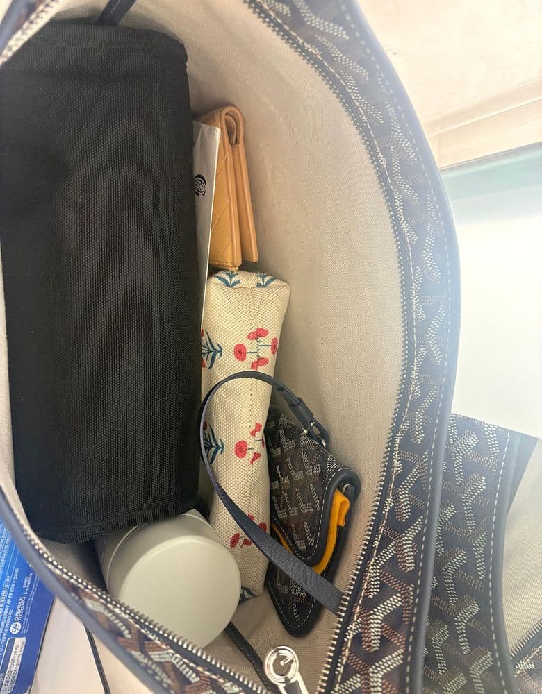 26.03.14 화이트데이 🍭 신세계강남점 고야드 가격은 기본314 + 마카주 46 = 360 결혼하고 슬슬 아기준비 하던 중에 훗날 기저귀가방으로 쓰고, 지금 당장도 무난하게 이것저것 막 때려넣고 다닐 수있는 가방을 원했기에 아주 가볍다고 칭찬이 자자한 고야드 보헴을 염두해 두고 백화점을 갔다. 어랏 기저귀가방으로는 생각보다 작은데? 그리고 뭐랄까 .. 어깨에 촤악 매지는 느낌이아니라 방방뜬다고 해야할까나 .. 이게 맞나~~ ? 그래서 일단 셀러님 명함받고 나와서 어기적어기적 다른 브랜드들을 둘러보는데 여기서 점점 명분을 잃어가는 나의 초점.. 갑자기 다른 브랜드에서 미니가방에 푹빠지고.... ㅎㅎ 남편이 오늘 사러 온 가방은 휘뚜루 템이라는 것을 잊지말라며 잡아줘서 결국 다시 고야드로 ~~ 블랙탄 생각하고 갔는데 맙소사 생각도 안했던 네이비 색깔 갑자기 왜이렇게 이뻐보이는지...? 홀린듯이 네이비에 핑크하트를 외치고 나왔다!! 짜잔 ㅡ! 받자마자 백화점 화장실에서 짐정리좀 해주고 ㅎㅎ 아 ! 짐이 생각했던 것 보다는 많이 안들어가지만 그래도 꽤 많이들어 가요! 받기전까지도 잘한거맞나? 했어요.. 아무래도 다들 블랙 아님 블랙탄을 많이하셔서 근데 지금 매우 만족합니다!!! 네이비에 핑크하트 넘 이뽀요.. 감사합니다!(?)