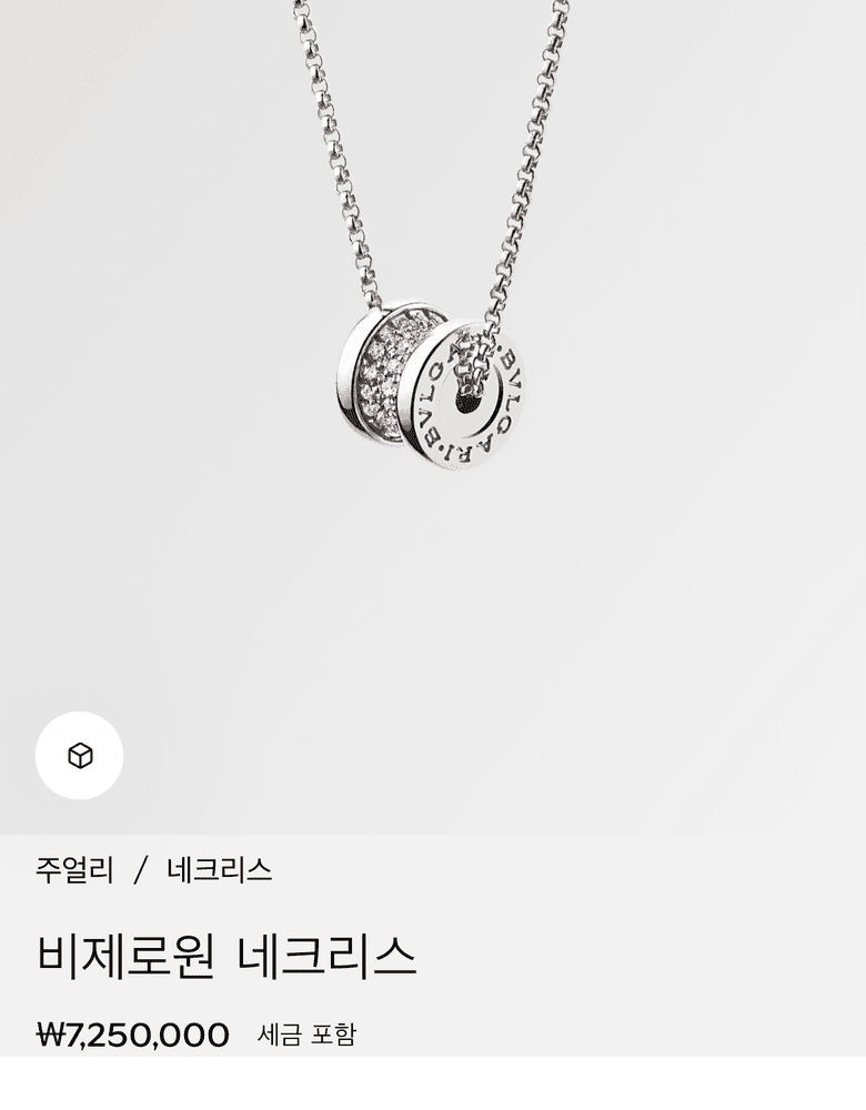 불가리 비제로원미니파베 화아트골드 목걸이샤징이팔로우불가리 비제로원미니파베 화아트골드 목걸이구매년도2025년구매가격725만원⭐️ ⭐️ ⭐️ ⭐️ ⭐️ 넘반짝거리고 예뻐요ㅎㅎ 기요세랑고민했는데 제이미지에는이게맞네요 2025.01.08