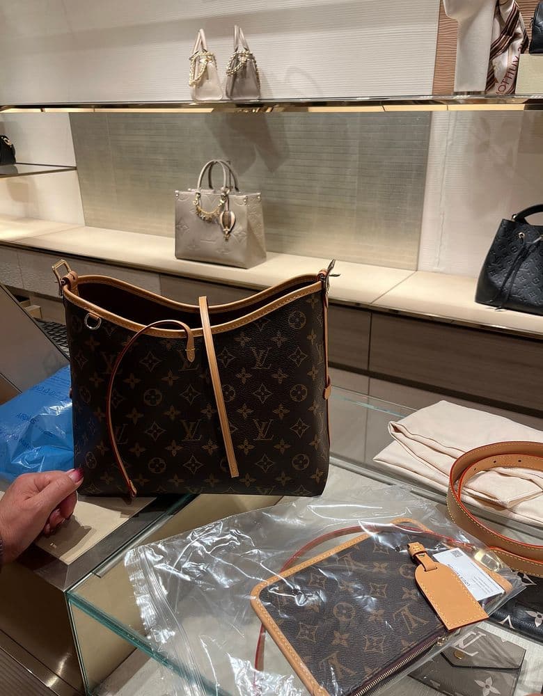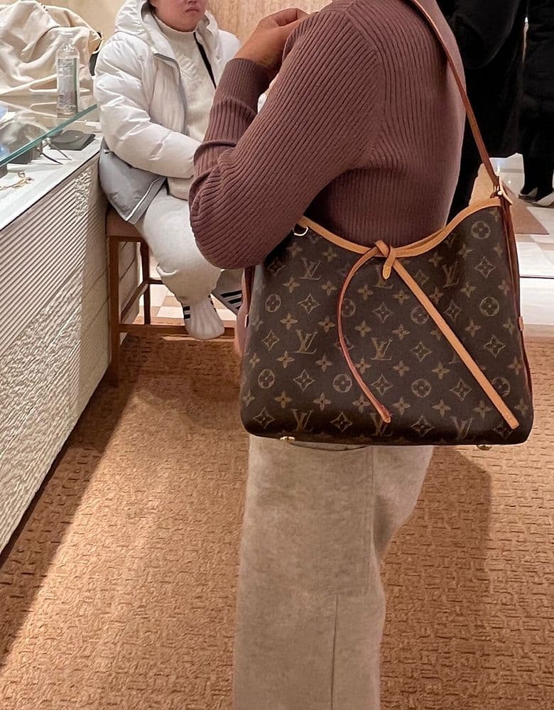 ⭐️ ⭐️ ⭐️ ⭐️ ⭐️ 루이비통 캐리올pm(사이즈인듯) 샀어요. 엄마랑 백화점 둘러보다 엄마가 한눈에 반해서 겟했어요! 휘뚜루마뚜루용으로 가지고 다닐 가방이면 딱이네요. 60대 중반 엄마(착샷) 가볍고 간지납니다. 실물이 더 예쁜 캐리올. 지갑 파우치 하나 더 있어요. 단점은 아직 모르겠네요 ㅋㅋ너무 만족하셔서 ㅋㅋ <구매일&방문일/장소/가격> 2024.12.31일/신세계센텀/367만원 <리뷰> 무엇보다 가벼워서 너무 좋네요.😃 나이불문하고 다 어울릴 것 같은 제품이예요