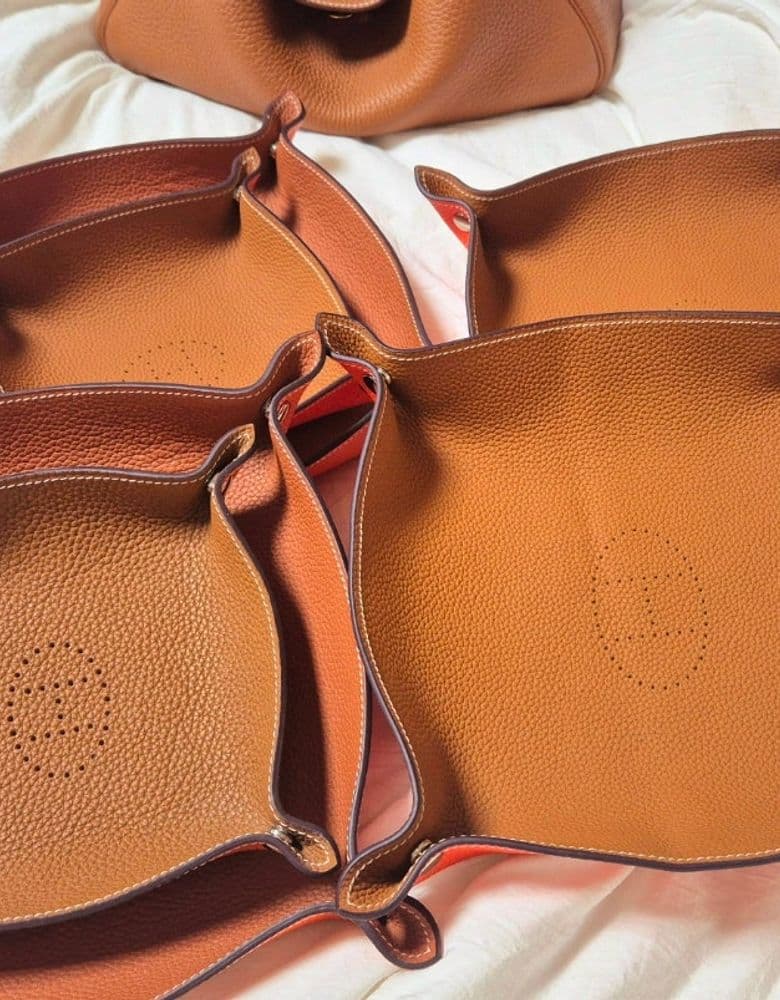 에르메스 트레이이몽팔로우에르메스 트레이구매년도2023년구매처해외⭐️ ⭐️ ⭐️ ⭐️ ⭐️ 장점 편리하고 가죽이 부드러워요/단점 없어요 <구매일&방문일/장소/가격> 23년 해외 4개 , 24년 해외2개 (24년구매는 뒤 오렌지색이 더 선명해요) <리뷰> 에르메스 가죽 트레이 6개 화장대 위 물건 올려놓기 좋아요 눈팅족인데 글 남겨보아요 오렌지색 영롱 한가요~2025.01.05