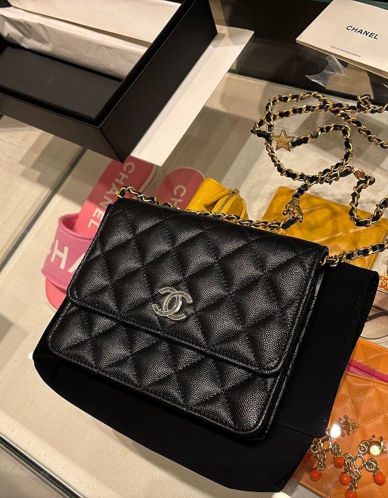⭐️ ⭐️ ⭐️ ⭐️ 신본 샤넬을 갔어요! 3개가 이뻐서 고민을 합니다. 롯본에 뭐가 있나 가봅니다😆 아까 봤던 아이랑 또 둘중 고민을 합니다 이게 저한테 더 어울려요. 챠밍 엘레이~~ 겟🤍🤍🤍 영롱한 까멜리에🤍 <장/단점> - 장점: 예뻐요. 화려해요 - 단점: 체인이 화려해요. 장점이자 단점! <구매일&방문일/장소/가격> - 2024.01.04 - 롯데본점(명동) - 5,868,000 <리뷰> 유니크해서 같은거 메는사람 본적이 없어용. 이쁘고 화려해서 잘쓰고 있습니다. 금장을 원래 좋아해서 은장보다는 금장에 항상 끌리는 편..ㅎㅎ 체인에 별, 롤러스케이트, 로고 등 장식이 주렁주렁 달려있어요. 나즁에 as 가 피곤 할 수도… 뭐 그래두 자주 안쓰니까 괜찮을거 같구요.. 에어팟. 쿠션. 립 충분히 들어가고요. 카드도 여러장 들어가고 당연히 지퍼도 있습니다. 만족❤️
