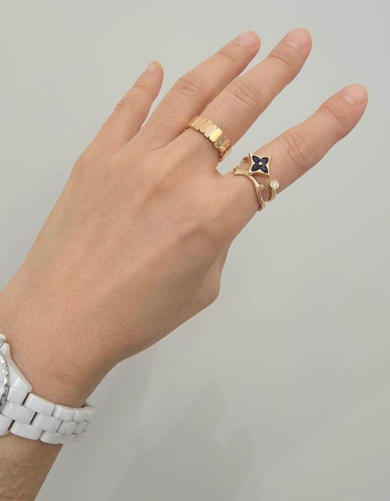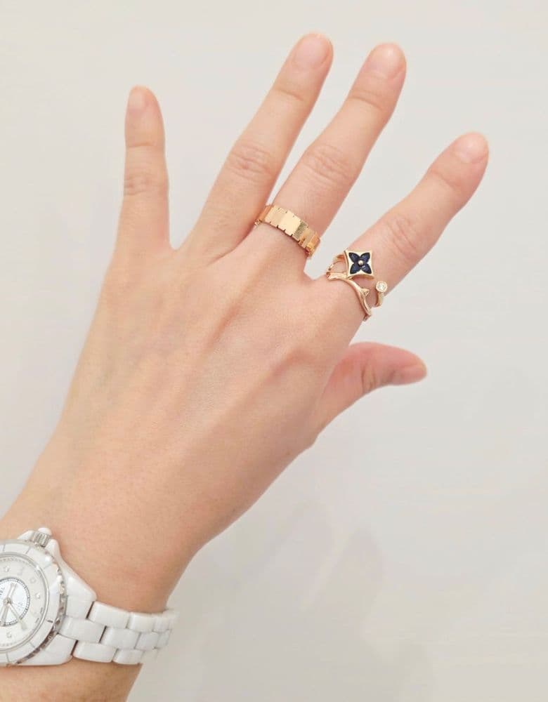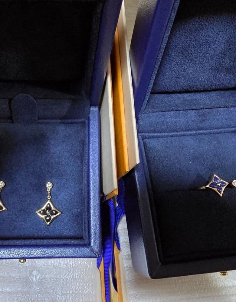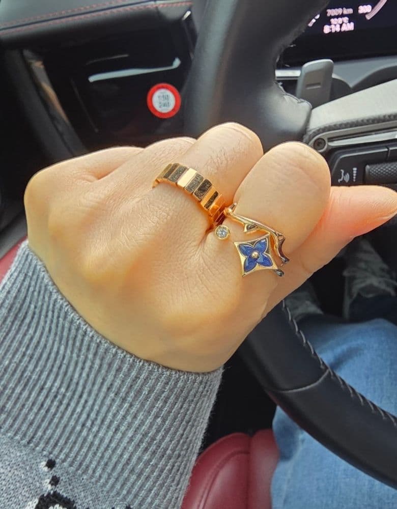 4.7일에 루이비통 9~10퍼센트 인상한대요!!! 셀러가 소식 알려주시길래 & 신상쥬얼리 나왔다해서 구경할경 방문했어요 (신강) 반지 모음 사진 중 우측에서 2, 3번째 다이아 있는 모델들은 신상이고 나머지는 기존 모델이에요. 쥬얼리 신상은 오늘 출시되고 바로 금액인상으로 가진않으니 ㅎㅎ신상은 구경만하고~~ 인상예정인 기존모델을 봤어요 ㅎㅎ 블루컬러가 희귀하고 인기도많고. 가격도 제일비싸고요~~그래서 인상폭이 제일비싼 블루로 픽♡ 다과도 냠냠 스터드형 블랙원석 이어링도 같이.. 구매했네요 기존 말라콰이트 있는데 이건 완전다른느낌이고 제가 갖고있는 디올 블랙로즈드방하고 어울릴거같아요 디올이랑 레이어드 했는데요~~ 이런느낌! 이쁘더라고요~~!! 밖에 밝은곳에서 보는 색감은 너무이뻐요 실내에서 보면 짙은 딥블루고요 레이어드를 바꿔서 껴봤어요 디올 링하고 짝궁처럼 어울리네요 분리해서 단독 착용시느낌 이어링도 한번 착용샷^^ 인상폭이 적지않으니 생각있으셨던 시크님들 어서 구매하세요♡