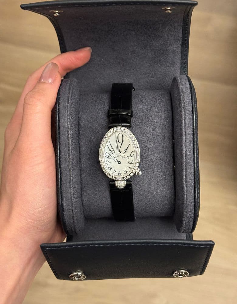 ⭐️ ⭐️ ⭐️ ⭐️ ⭐️ 장점: 이쁘다… 그냥 이쁘다 단점: 딱히 없다…! <구매일&방문일/장소/가격> 첫번째 사진은 매장에 디피되어있는게 로마 숫자 밖에 없어서 그걸로 시착해본 거고 실제로 구매한 거는 밑에 화골 8928입니다~ㅎㅎ 홍콩에서 2024년 2월 가격 인상 전에 구매했어요… 택스프리로..!!😆 사실 정확한 가격은 예물이라 잘 모릅니다😅 그 당시 남편이 알아서 샀을 거라 생각해요 <리뷰> 사실 이거 살려고 신세계 명동 면세점부터 들렀는데 (가격 인상전) 그 때 일반 매장에서 파는 가격보다 매우 싼거에요? 거의 15퍼 가까이 저렴했던 걸로 기억해요. 이 기억을 가지고 홍콩 브레게 센트럴에 가서 현장에서 네고를 시전했어요. 신백 면세점이 더 싼데 우린 너한테 살거고 그러면 너 세일즈 이득이고 솰라솰라~~ 이랬더니 할인해줬어요. 15퍼 정도는 아니지만 어느 정도…? 아니 근데 이게 되네..? 암튼 화려해보이지만 심플하게 입고 다니는 사람 입장으로서 캐쥬얼에도 잘 어울려요! 다이아링과 같이 하면 심심하지 않고 찰떡이에요😙