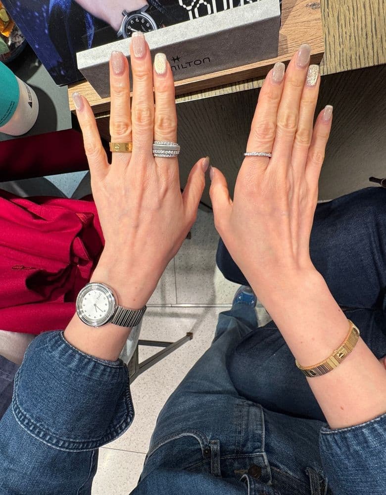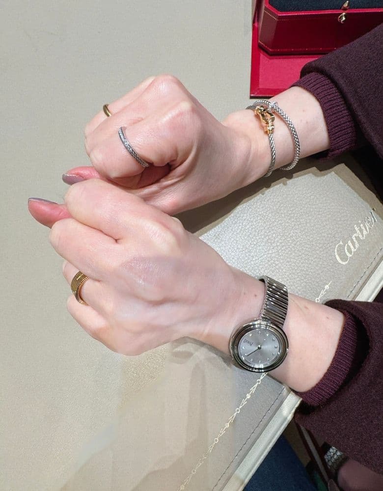 볼매랄까요 볼수록 잘 샀다 싶은 템이에요 페이스가 엄청 얇아서 긴 소매 옷 입을 때도 쏙 들어가서 편하고 일반 스틸 브슬에 비해 색도 화골 느낌나서 이리저리 매치하기 좋고 심플함이 매력이에요 예거 리베르소 원 금통있어서 동그란 베젤 스틸 시계 구입하려고 여기 저기 많이 둘러봤었는데 제 취향에는 정말 찰떡이어서 만족하는 시계에요 너무 화려한 스타일이 아니라서 데일리템으로 사용하기에 부담없고 지나치게 여성스럽지는 않으면서도 은근한 여성미도 갖추고 있고 심플함이 시크함 또한 주더라고요 베젤이 너무 작지도 않은 점도 좋아요 그리고 무엇보다 가죽 스트랩이 불호라 브레이슬릿인 점이 제일 마음에 드는 점이랍니다