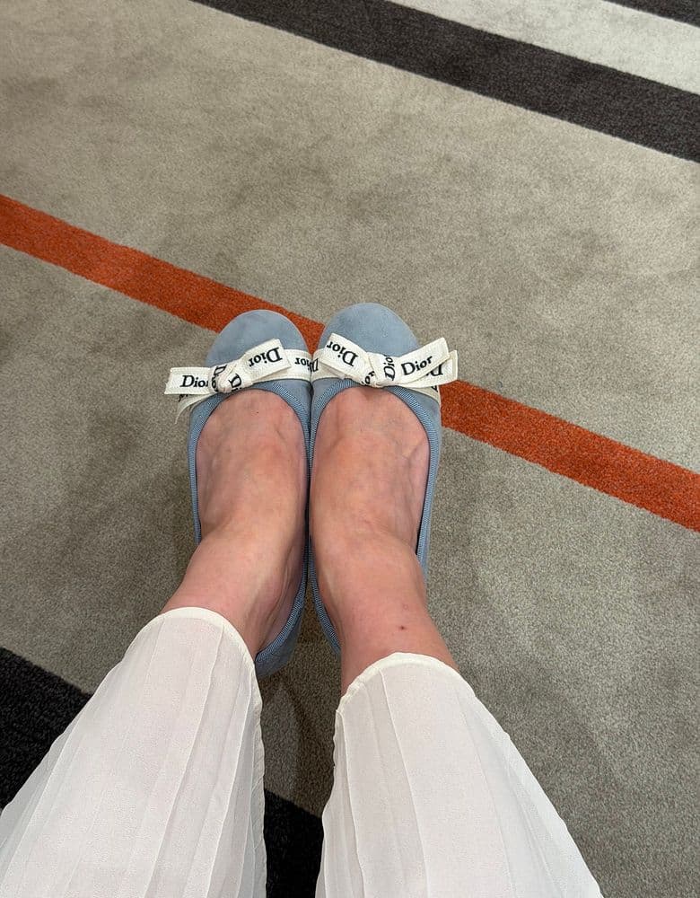 어제 디올가서 발레플랫 샀어요^^~ 원래는 남편이골라 준 다른디자인 페이던트 플랫 슈즈 사려고 간건데, 소재가 소재이다보니 발이 너무 불편하더라구요ㅠ 그러다 발레플랫 블루가 한 점 딱 있어서(230사이즈) 바로 데려왔어용^^ 새 플랫 신고 예쁜 벚꽃도 보고왔어요🌸 너무맘에 들어요ㅎㅎ 착화감도 좋아요🩵 요 플랫 핑크도있고 블랙도있는데 소재는 틀려용!저는 블루가 젤 이뻤다는^^ 남편 고마워~💕