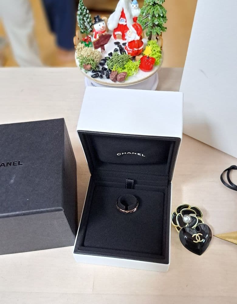 ⭐️ ⭐️ ⭐️ ⭐️ <장점> 착용감 부드럽고 미니사이즈라 걸리적 거림 없이 데일리템으러 좋아요 레이어드 하기도 좋구요 <단점> 광택이 금방 ...ㅠㅠ 사라질듯... <구매일&방문일/장소/가격> 2023.12 신세계본점 239 <리뷰> 사실 평상시 반지는 잘 끼질 않는데... 손이 넘 보잘것 없이 안예뻐서요..🤣🤣. 그런데 어느날 손을 좀 예뻐해 주자 하는 생각이 들어서 들인 아이예요^^ 할리데이패키지 작년에 너무 이뻐서 그해에 작은 쪼꼬미들 데리고 왔는데..만족하고 잘 사용중이예요. 역시나 샤넬샤넬 합니다~