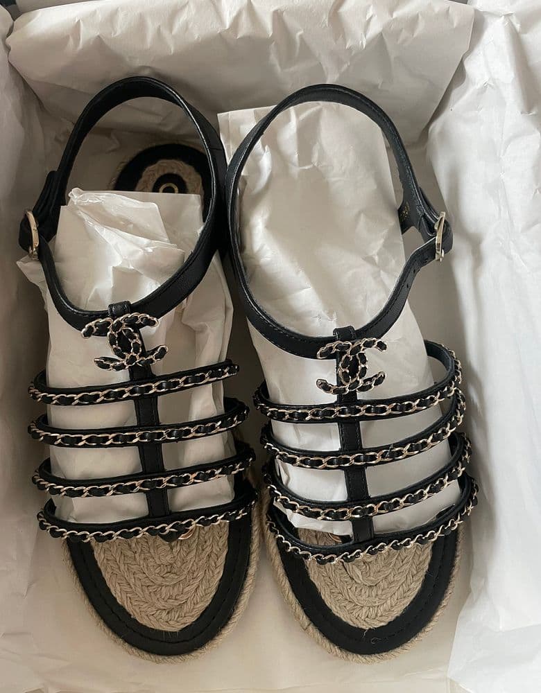 ⭐️ ⭐️ ⭐️ ⭐️ ⭐️ 블랙에 사이즈도 37이 남아있길래 대박대박 거리면서 ㅋㅋㅋㅋㅋㅋ다른거랑 같이 냉큼 구입해왔는데 ….계절이 아니라 그런지 안인거 같기도하고..시원해 보이게 화이트 살껄 싶기도 하고 그러네요..지금가도 어차피 화이트 남아있을까 싶고..샤넬은 블랙이지 하면서 늘 블랙 샀더니 샤넬 신발은 전부 블랙이니 재미없는..그런? 착화감은 생각보다 편한거 같아요. 바닥은 좁은듯해도 스트랩 길이는 짧지 않게 나온듯요. 12월 11일 오후 구입이요