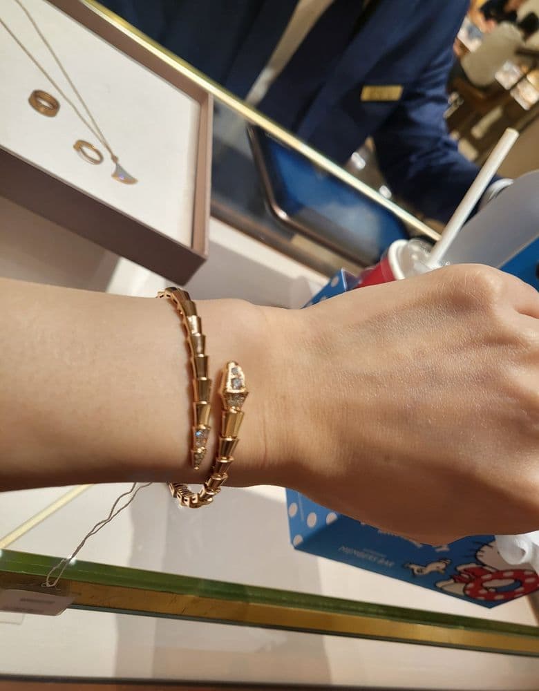 저는 티파니나 부쉐론, 샤넬 위주로 가지고 있는데 제가 불가리 입문으로 산 디바스드림이에요~ 신강에서 데려왔고요 가격오르기전에 사서 1000만원 초반이었어요~ 사실 너무 여성스러워서 데일리로 가능할까 고민이 있었는데 너무 제 스타일이어서 고생한 나를 위해 휴가때 샀어요~♡ 제 옷 스타일이랑 잘 어울리고 생각보다 케주얼에도 잘 어울려서 만족하며 착용하고 있고 시간이 지날수록 익숙해지고 있어요~ 펜던트 크기가 커서 존재감 있고 다이아는 말할 것도 없고 줄이 엄청 반짝반짝해요~~ 그리고 착용법이 너무 편하고요~ 아래 사진은 다음 아이로 고민중인 팔찌고요~ 비제로원 풀파베 목걸이랑 고민중이에요~ 불가리는 존재감 갑입니다!!