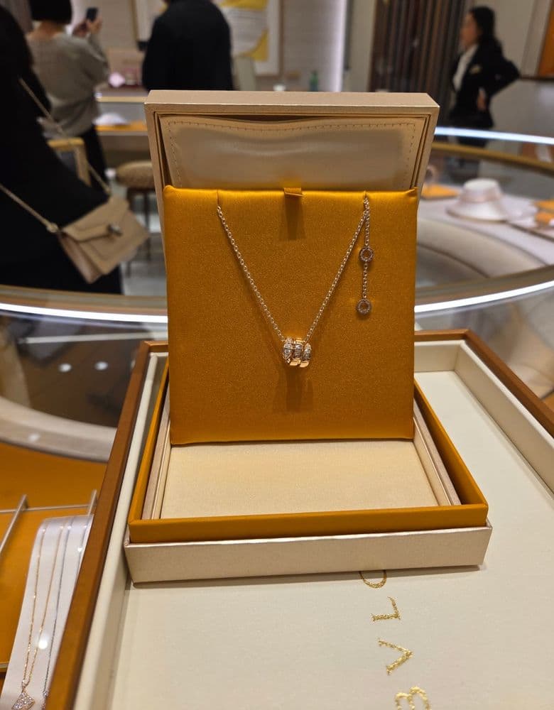 2026.04.12 대기걸고 2시간 정도 있다 방문 신본 너무 예뻐요 😭😭😭😭😭😭 티파니 에르메스 반클 보고 까르띠에는 대기걸었다가 딱 생각나는 모델이 없어서 대기 취소하고 바로 불가리 콜 와서 갔어요 너무 맘에 들고 이거다 싶어서 데려왔어요 🙈 ㅜㅜㅜㅜ 아침에 잠옷 입고 너무 목걸이 보고싶어서 찍은 사진 ㅋㅋ 길가다 또 보고싶어서 찍은 사진🤣 초콜릿 탄산음료 먹다가 급 또 찍은 사진🌼