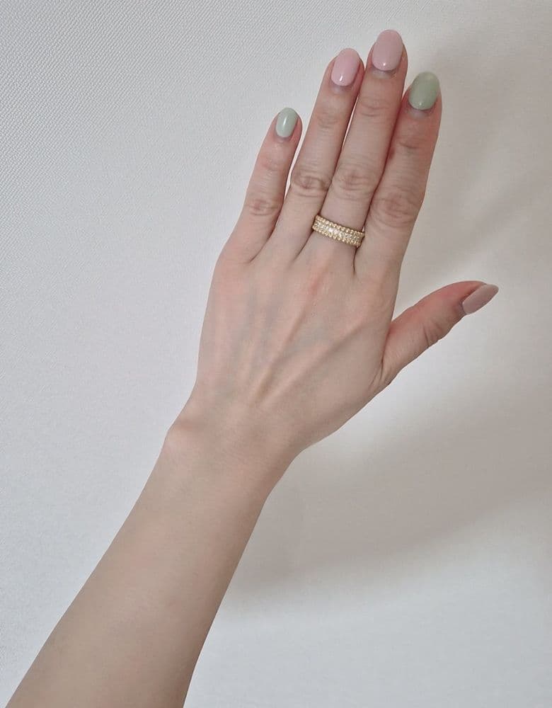 ✔️ 구매일&방문일&장소&가격 2026.4.1. 판교현백 14,400,000 천만원 초반대에 사려 했는데, 😢 가격이 슬프네요. 사이즈 엄청 고민하다가 검지 반지는 많아서 중지에 맞춰 샀어요 아침 점심 저녁 붓기로 인해 손가락 치수 잘 따져야 한다고 셀러님이 조언해 주셔서 며칠을 고민했네요. 끼면 묵직~하니 기분 좋아요