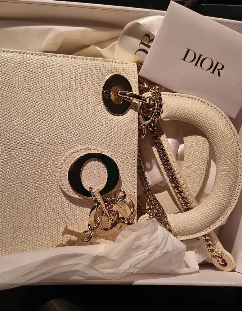 ⭐️ ⭐️ ⭐️ ⭐️ ⭐️ 저 아직 들어보지않아서 woc 레퍼런스 사넬가방이예용 :') 백화점에서 있는거 착용하다가 넘 블링블링한 이 맛에 너무 예쁜거같아서 아직두 한번두 안매구 박스에 고의보관중 ㅎㅎ 일딴 요 손잡이 부분이 특이하고 넘예뻐요 진주도 달려있궁 <구매일&방문일/장소/가격> 2023 10 29/ 사넬백화점/ 660만원에구입했어용 <리뷰> 보고만있어두 기분좋아지는 사넬루네요 헤헤 제가 화이트나 무난한 가방만 너무많다보니 있다보니 저색갈 너무 매력적인거같아요 무난한옷에도 더 잘어울리구 좋아용! 2번: 디올 레이디 리자드 미니 사진을 찍기위해 제가 오픈 한번했어용 이것두 제가 애기엄마 다보니 쓰던가방만 매게되서 한번도 착용을 못했네요 새상품인데 디올매장 갔다가 하나 남았다구 해서 언넝 샀는데 가격이 1300만원했어요 근데 이거는 가죽가방인데 가죽 리자드 느낌이 강하지 않아서 어떤 옷에두 있어보여서 별 다섯개주고싶어요 ㅠㅠ 너무예뻐요 언냐들한테 보여주고 싶어서 작스안에 있는거 잠깐 오픈해서 올려봐용♥ 3. DAMIANI 다미아니 벨포크 멀티컬러 네크리스 에디션 ♥ 요것두 착용한번밖에 안한상품이예용 가격은 신세계백화점에서 천만원에 구매했구용 ♥ 가방이랑 악세사리랑 너무많아서 애기엄마가 되서 그런가 ㅎㅎ 매던거만 매게되서 새상품들 싸게 내놓고싶긴한데 박스안에 그대로 보관되어있어서용 어때요? 언냐들 일딴 저는 디올 미니 리자드가방이 고급스러운 느낌이 들구 어떤 코디든 잘어울린꺼같은데 언냐들의 생각은? 사넬루!! 우리가 사랑하는 사넬♥ 저상품도 넘나 예뻐서 가격도 계속 오르고 있고 구매하긴 잘한거같아요! 다른 가방들도 많이 가지구 있구 악세사리 저는 애기가 자꾸 뜯을라구 해서 비싼거 착용을 못하고 있는지라 흑흑 슬프네요 ㅠㅠ 그래두 애기가 예뻐서 참고 견디는중 하하.. 다른 가방들도 차근차근 올릴께요!