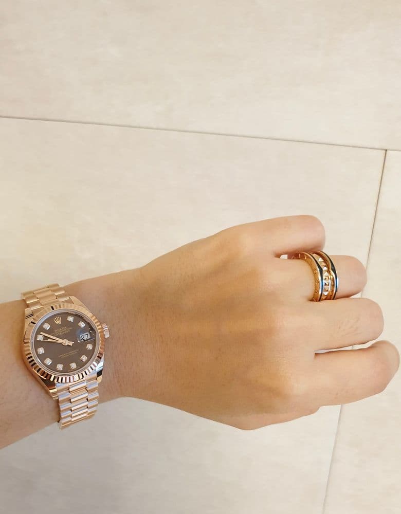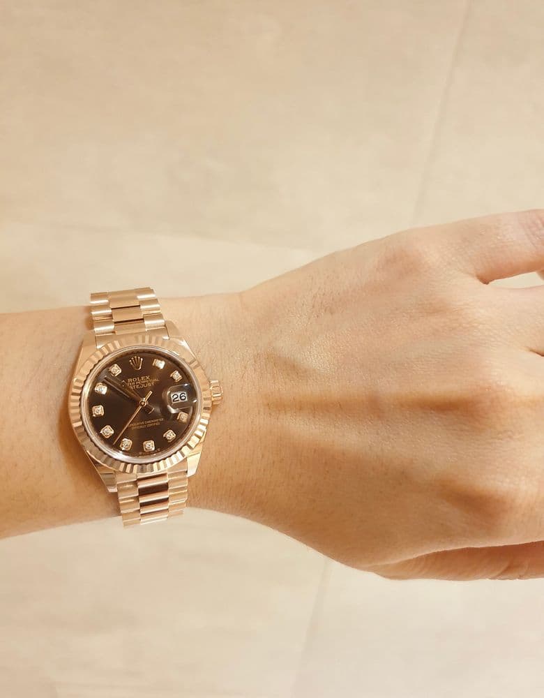 ⭐️ ⭐️ ⭐️ ⭐️ ⭐️ 장점: 착용감 너무 편하고 완젼 고급짐 단점: 구매하기 어려움 <구매일&방문일/장소/가격> 23년 12월쯤/압구정 현대/4041만원 <리뷰> 1년동안 열심히 일한 내게 온 귀한 시계랍니다~^^ 크리스마스 선물 구경하러 주말에 현백에 갔다가 롤렉스 매장에 슬쩍 들러 여쭤보니 저녁때쯤 워크인된다길래 혹시나하고 들어갔는데, 딱 원하는 조합의 로골금통 초코텐포가 있지뭐예요~~^^ 워크인으로 운좋게 찾아와준 너무나 맘에드는 시계예요~ 이미 콤비텐포도 있고, 다야베젤스틸도 있지만 롤렉스 특유의 로골색이 너무 마음에 들더라구요!!! 이 시계가 최애시계가 됐어요^^ 일년사이 가격을 두번이나 올린 롤렉스~ 23년 12월 4041만원에 샀는데 현재가격은 4652만원이 되서 금테크까지 챙겼어요ㅎㅎ (가격인상으로 25년 1월기준 5158만원입니다~) ps:사실 이런 리뷰 챙피해서 시크님들처럼 잘 못올리는데 이벤트땜에 용기내서 올려봅니다! 무플이면 급소심해질것 같아요...