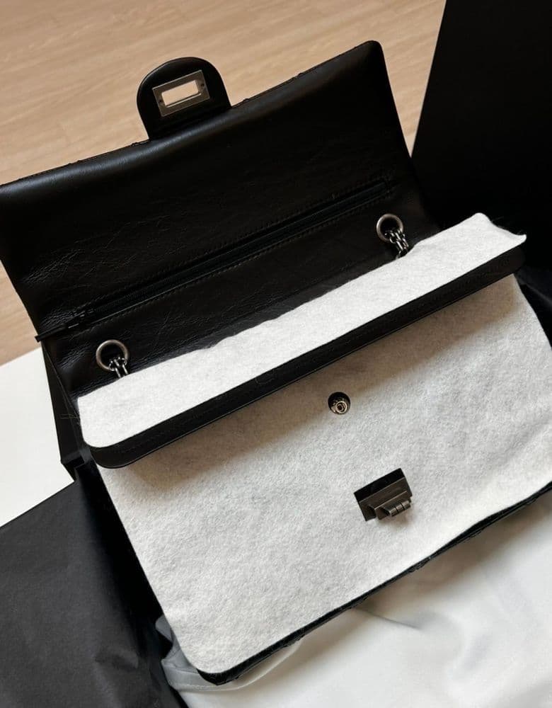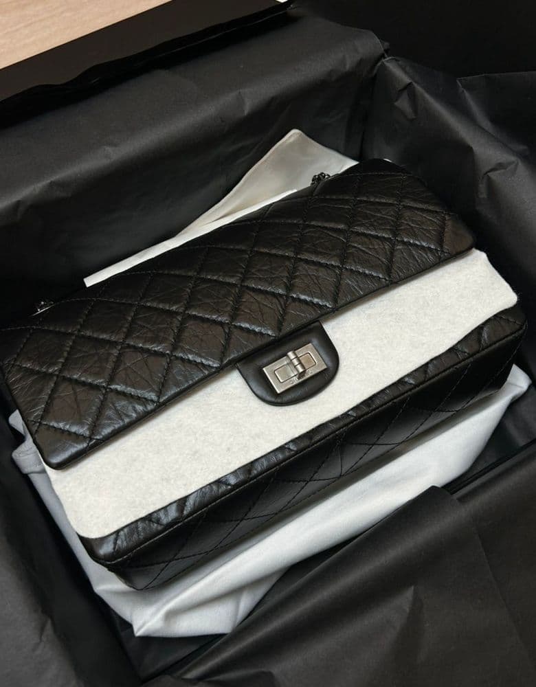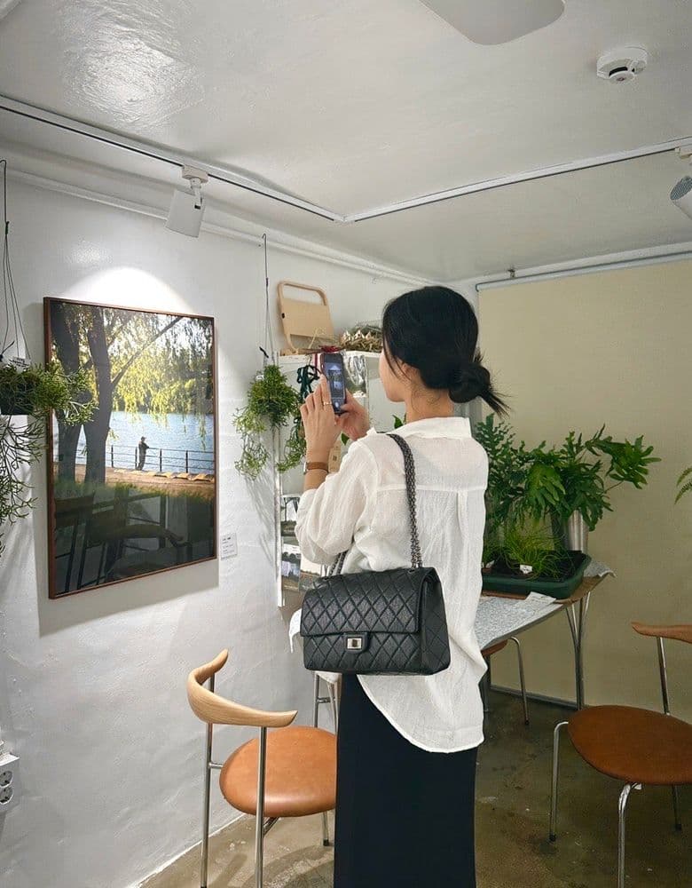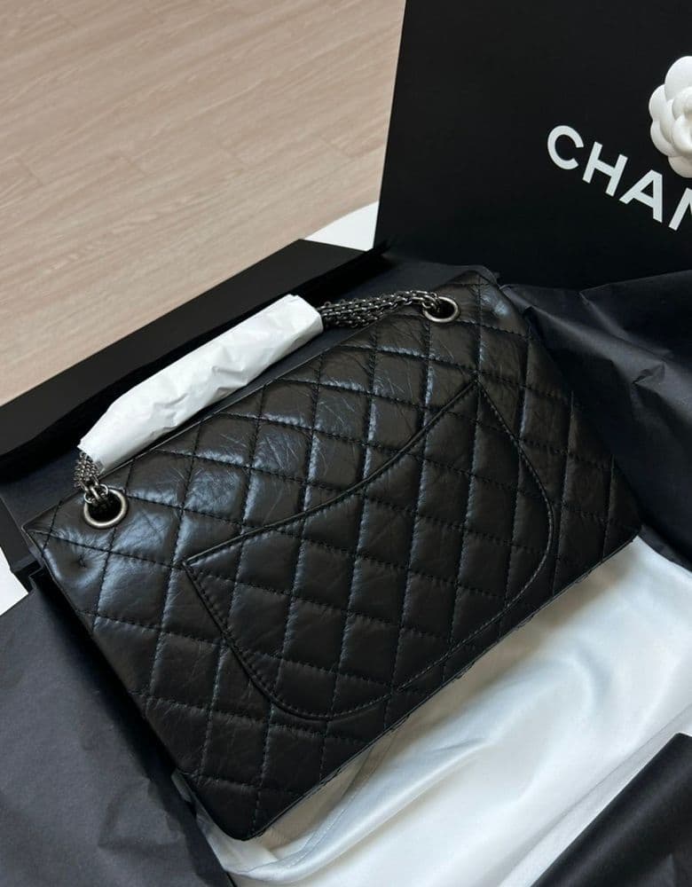 ⭐️ ⭐️ ⭐️ ⭐️ ⭐️ 샤넬 가방 구입, 오픈런 요즘은 오픈런이 없어진 이후로 쉽게 매장 방문이 가능해요. 때문에 클래식도 당일 구매가 가능! 물론 매장에 가방이 있긴 해야겠죠~? 언제 봐도 반가운 까멜리아🎀 클래식 라인은 꼭 이 하얀 천 가방에 넣어져 있어요 1955년, 가브리엘 샤넬이 만들어 낸 2.55 핸드백 퀼팅레더와 체인 스트랩, 일반 클래식 라인은 잠금장치가 샤넬 로고 모양이라면 2.55 빈티지는 마드오아젤 턴락 잠금장치에 CHNNEL 각인이 적혀져 있어요 가격 (2.55 플랩 백 2024년 10월 기준) 라지 ₩16,780,000원 미듐 ₩15,570,000원 미니 ₩7,480,000원 빈티지 라인 소재는 카프스킨으로 다른 가죽들보다 스크래치에 강해서 들고 다니기가 수월해요. 급하게 나온 날임에도 불구하고 빈티지 하나 걸치고 나왔다고 고급 지고 우아하죠~? 다음번에는 하객룩 콘셉트로 세팅하고 착용샷 또 더 보여드릴게요💛
