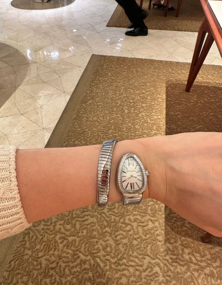 더현대서울 10시40분에 도착해서 주차 후 불가리 매장에 10시53분에 대기 겨우 걸고 대기 번호 18번 받았어요. 길어봤자 두시간정도면 되겠거니 했는데 매장에 들어간 시간이 오후 15시7분;;;;;; 4시간 15분 기다렸네요. 하 정말 기다리면서 현타…이렇게까지 해서 사야하나 싶기도 하면서 이렇게까지 기다렸는데 못사면 더 화날것 같아 끝까지 인내하며 기다렸답니다. 4월 20일에 인상된다는 소식에 지난주 금요일에도 가서 대기하다가 포기하고 왔는데 그때 살껄 후회했습니다.. 그땐 두시간 반만에 연락왔었거든요^^; 자리 안내 받고도… 10분 이상 기다린것 같아요. 제일 아쉬웠던 부분. 어떤 직원도 먼저 와서 아직 다른 직원들이 응대중이니 조금만 기다려 달라는 안내조차 없었습니다. 제가볼땐 직원 한두명 여유가 있어보였는데 말이죠. 그나마 티서비스 해주겠다고 티매니저 같은 직원분이 음료 안내 해주길래 기다리면서 마시려고 했는데 오프너도없이 줘서 황당 ㅋㅋㅋ 골드메달 주스마냥 손으로 돌려서 여는건줄 알고 열심히 휴지 말아서 돌렸는데 하도 안열려서 옆 손님꺼 보니 오프너가 있네요^^; 인상 앞두고 바쁜건 알겠는데 정말 꿔다놓은 보릿자루 취급 당한것 같았어요. 이미 매장 들어갈 시점엔 녹초ㅠㅠ 여차저차 직원분이 와서 디바스 드림 모델 두가지를 목에 걸어주며 비교해 볼수있게 해주었고 풀파베는 생각안해봤는데 막상 해보니까 정말 예쁘더라구요! 그렇지만 제 오랜 위시였던 자개판으로 픽! 옐골은 매장에 없어 주문해야하고 로골만 있었어요. 전 로골로 픽. 처음에 했던 자개가 어두운 빛이 돌아 다른 자개로 보여달라고 했더니 셀러분이 두가지 더 가져오셨고 그중에 영롱한 무지개빛 자개로 골랐어요~ 그와중에 실물로 차보고 싶었던 투보가스도 착용해보구요~ 와….투보가스 실물 정말 예쁘더라구요. 차보자마자 바로 마음을 뺐긴..ㅎ 근데 원래 투보가스가 손목을 많이 조이는건가요? 제가 손목이 가는편인데도 착용했을때 손목이 타이트해서 약간 아프더라구요.. 잠깐 착용했는데 손목 빨개졌어요ㅠ 너무 아름다운데 착용감 0점. 아파서 오래 못낄듯요.. 결론은 4시간 15분만에 매장 입성해서 인상전에 잘 데려왔구요. 제일 아쉬웠던건 내부에 있는 직원들의 안내가 미흡했다는점이었습니다. 하지만 제 담당 셀러였던 ‘강보승’셀러님은 친절하셨어요 :) (제가 기다리는걸 봤는데 다른 셀러가 응대하고 있는줄 알고있었다며.. 계속 혼자 기다려서 자기가 왔대요ㅠ) 인상전 가격 381만원에 데려 왔습니다!