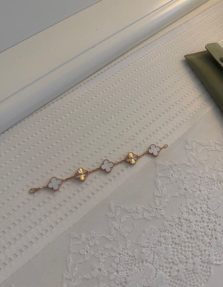 ✔️ 구매일&방문일&장소&가격 개인거래 ✔️ 상품리뷰 정말 너무 애정하는 쥬얼리중에 하나인...♥️ 너무 예뻐요 손목이 가늘어서 4센치 줄인거에요!! 애증의 메종5모티브🫧 너무 예쁘지만 메종은 애증임미다...! 구하기도 어렵고 이젠 단종까지 되버린😭 길이는 한방에 성공해서 좋어요ㅎㅎ 손목 엄청 가느신분들은 간격 안맞게 3~ 3.5 이렇게 하지마시구 4센치 해보셔요!😚