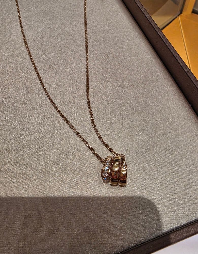 불가리 세르펜티 데미파베 목걸이아몬드봉봉사랑팔로우불가리 세르펜티 데미파베 목걸이구매년도2026년구매가격815만원구매처신세계백화점 4월17일 신세계 815구매했어요 인상전이라 사람 진짜 많았어요 사고싶었던 세르펜티 데미파베 너무 이뿌네요 로골 이뻐요2026.04.19