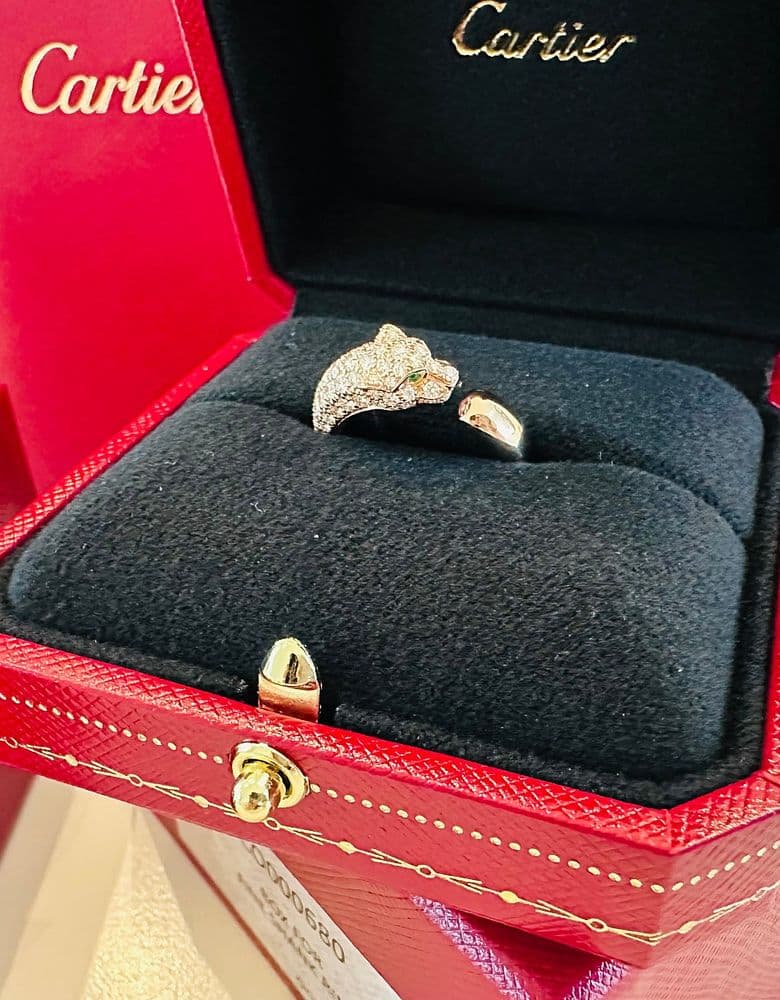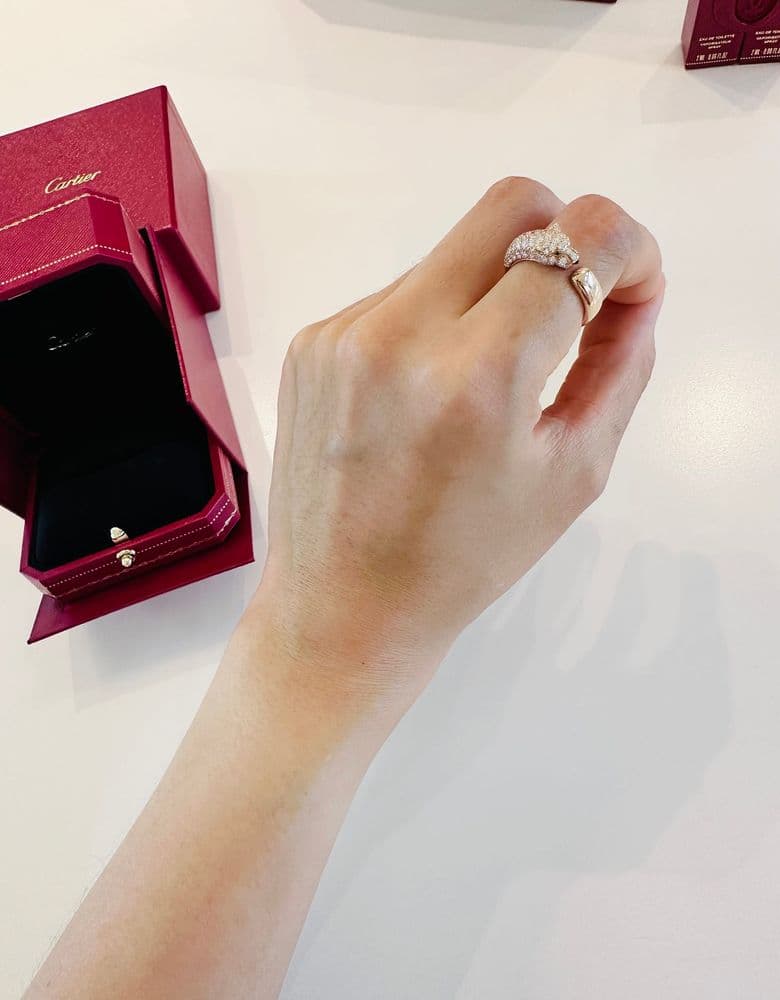 지난 일요일에, 세상 예쁜 반려팬더를 들였어요🐆 절대반지를 찾아 고뇌하며 시크님들의 조언을 정독해보니 세상엔 예쁜 반지들이 너무나 많았습니다.. 답답한 마음에 AI와 상담까지 하게되었고 AI가 너는 이미 팬더에 꽂혔으니 그냥 팬더를 사라고 해서 더이상은 묻지않았어요...ㅋㅋ AI가 눈치가 왜이렇게 빨라? 팬더 이쁘고 청순하고 카리스마있는 얼굴 잘나오게 찍어주고 싶은데 잘 안되네요 ㅠㅠ 컬러도 고민했지만 (셋다이쁘기때문에) 제 피부톤에 제일 잘맞는 로골로 골랐어요 사이즈도 고민거리였으나 딱 정사이즈와 살짝 할랑한 사이즈 중 살짝 할랑한 사이즈로 했어요 (손을 슬슬 털어봤을때 빠지지않는정도, 카펫 깔려있으니 세게 털어보라 하셨지만 도저히 세게는 못털음ㅋㅋ) 장점은 그냥 말도안되게 예쁨 (표현력 부족으로 표현이 안됨 그저 🐶예쁨), 착용 시 피로감, 우울감 싹 사라짐 단점은 손만 보임 ㅋㅋ 잘샀다고 컨펌 해주세요✨💕🩷