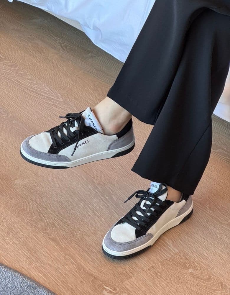 ⭐️ ⭐️ ⭐️ ⭐️ ⭐️ 샤넬 스웨이드 스니커즈 모델명 G45085 오늘은 샤넬이닷! 🤍🖤 신발 운동화부터 시작해서 슬리퍼 구두까지 부자지만 새롭고 이쁜건 늘 눈에 들어오는 법🖤 가격 모델명 가격 : 1,711,000 모델명 : G45085 흰색 검정 회색 조합이 너무 예쁘지 않나요? 가죽아닌 스웨이드 소재라 더 끌렸어요 굽이 높고 단단해서 꽉끼는 느낌보단 굽도 낮고 신발도 가볍고 발이 편한느낌? 저는 키가 167-8 정도라 굽낮은 운동화도 선호해요 진짜 진짜 짱 편해요!!! 최근에 산 운동화들이 뒷꿈치며 복숭아뼈며 걸을때 불편해서 슬펐는데 이 운동화는 편해서 지금 저의 최애 신발❤️👟 블랙 계열로 입을 때 요즘 제일 많이 신는 운동화에요 여름에 백화점에서 구매했었는데 요즘은 매장가서 보면 안보이더라구요ㅠㅠ 편해서 다른색상도 보이면 구입하려구요😊 편한신발 찾으신다면 너무 강추하고싶어요!!
